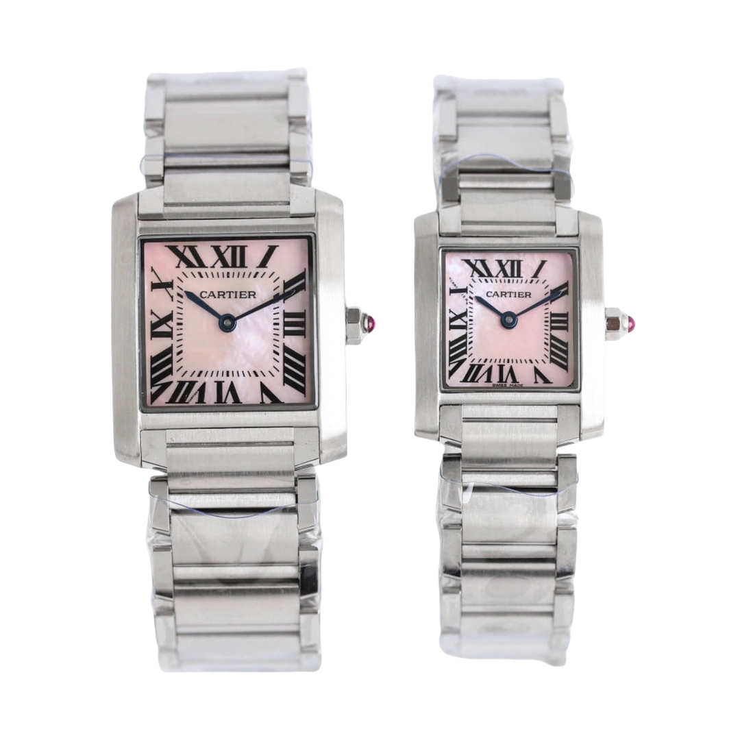 Cartier Tank 30mm x 25mm Pink Fritillaria Dial Steel Bezel W51028Q3 Woman Ladies