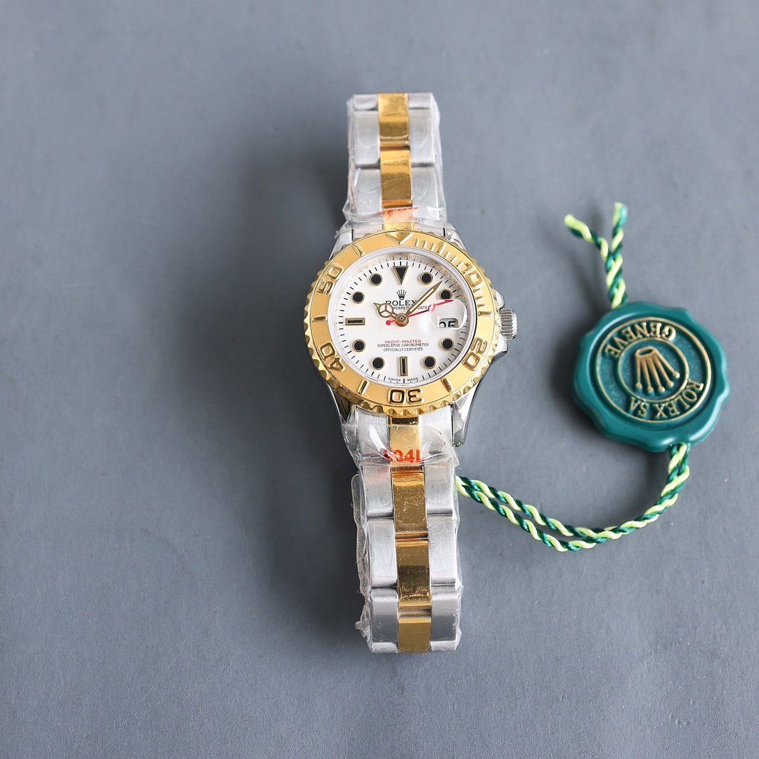 | Rolex Yacht-Master 29mm White Dial Yellow Gold Bezel Steel 168623 Women | |