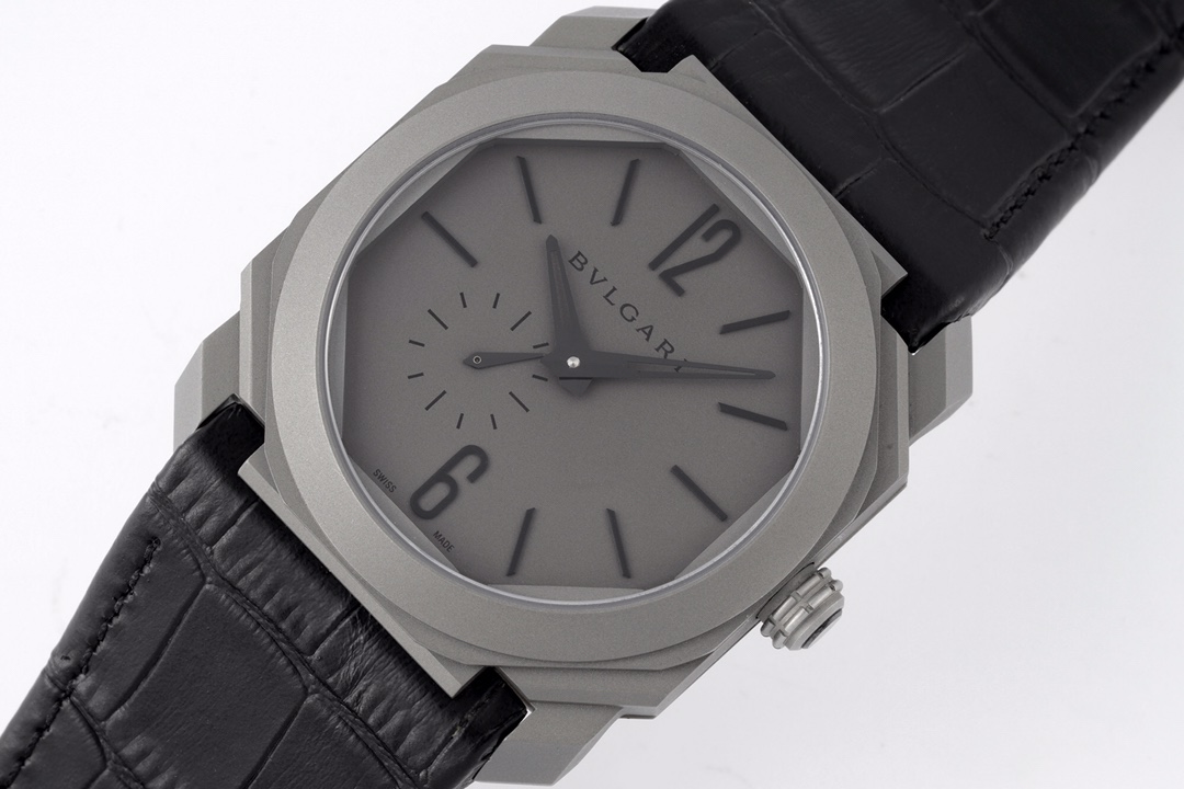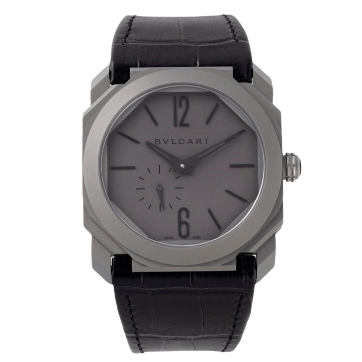 | BVLGARI Octo Finissimo 40mm Grey Dial Titanium Bezel Black Leather Strap 102711 BGO40C14TLXTAUTO | |