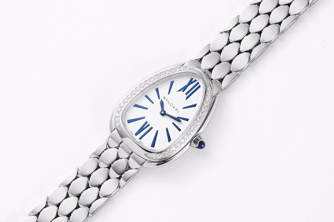 | BVLGARI Serpenti Seduttori 33mm White Blue Dial Steel Diamond Bezel Steel Strap 103148 Ladies Woman | |