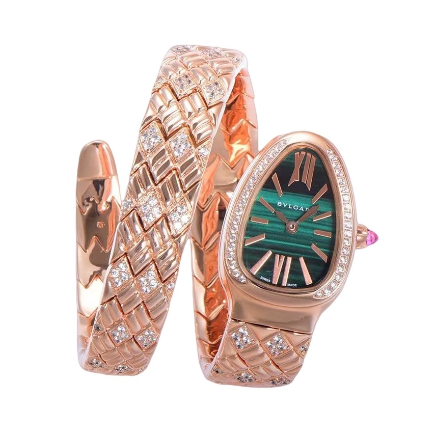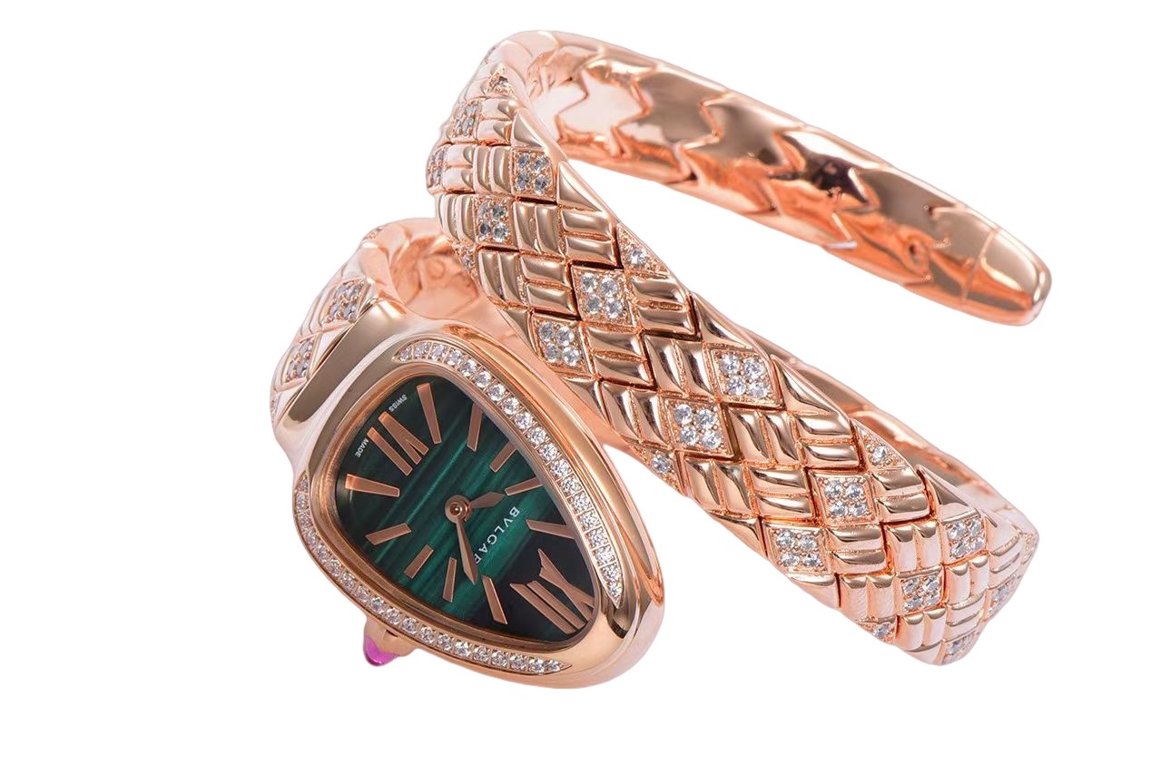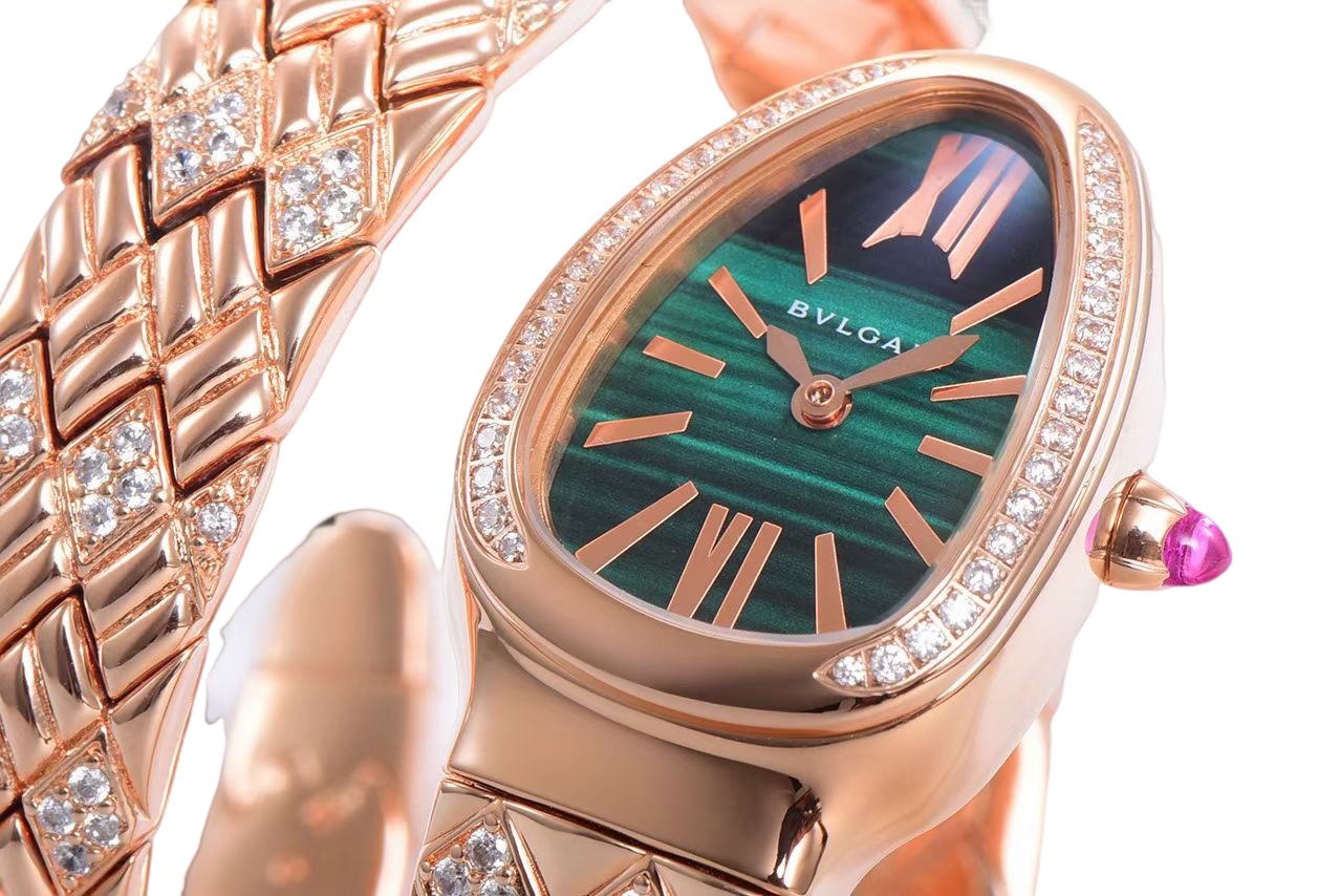 | BVLGARI Serpenti Spiga 35mm Green Malachite Dial Rose Gold Diamond Bezel Rose Gold Diamond Strap 103657 Ladies Woman | |