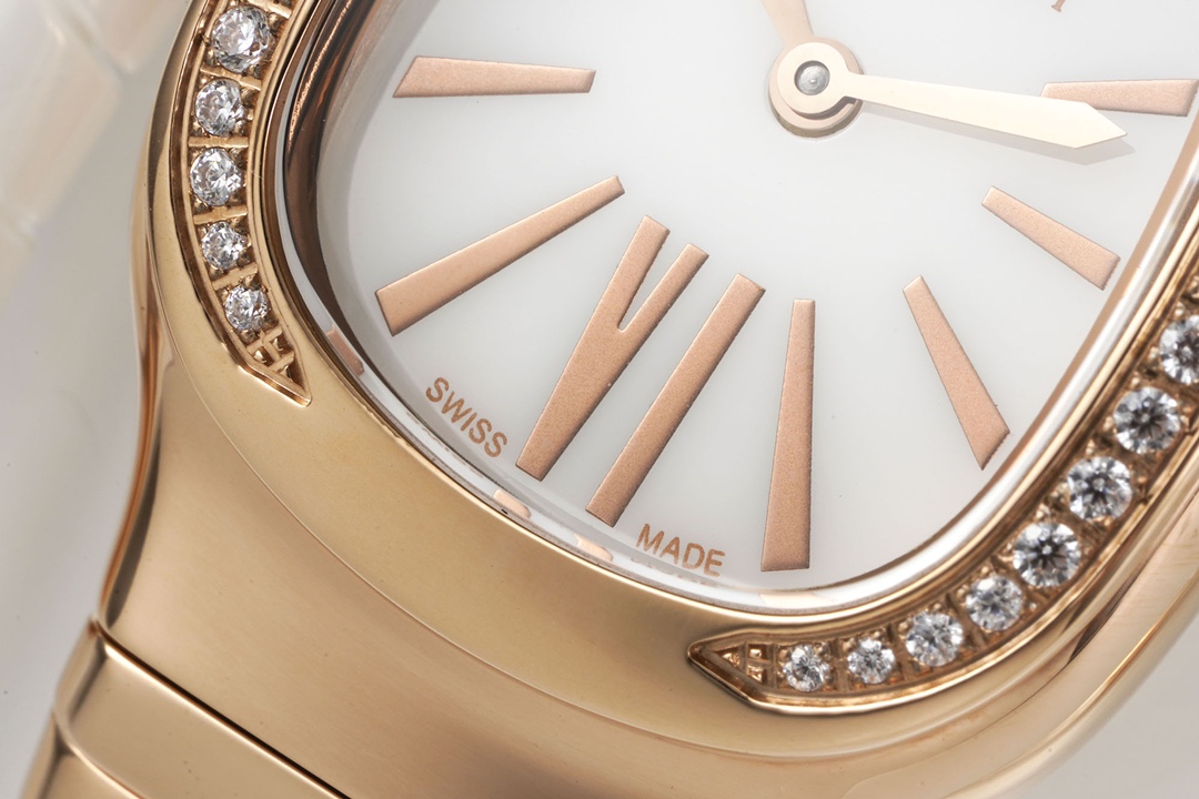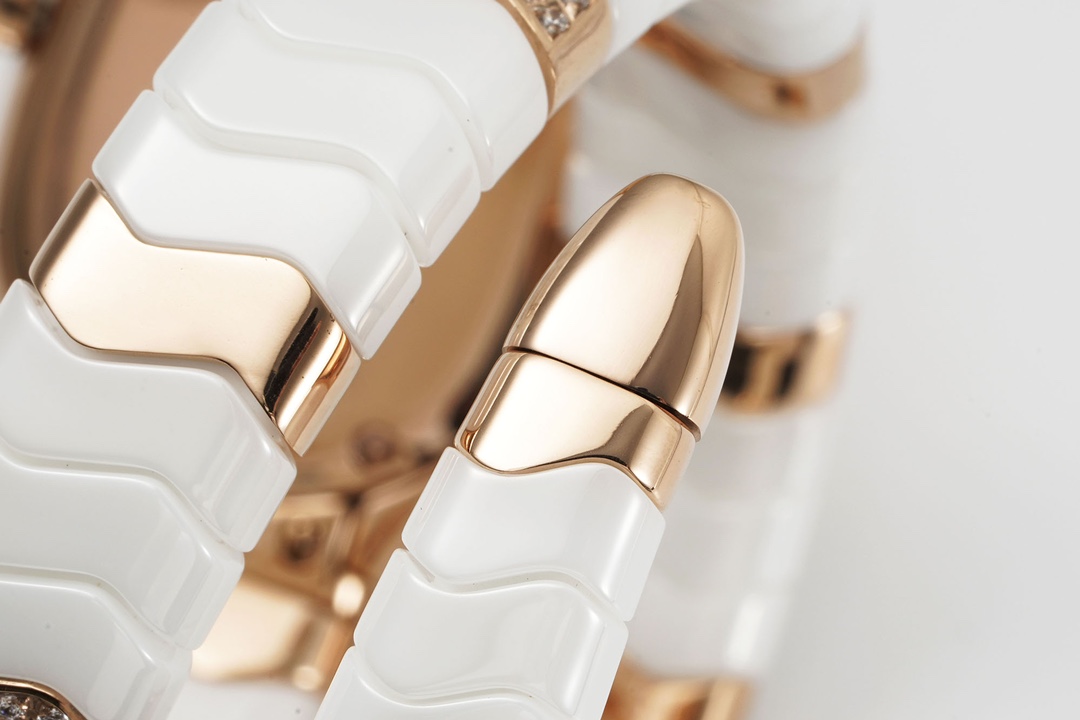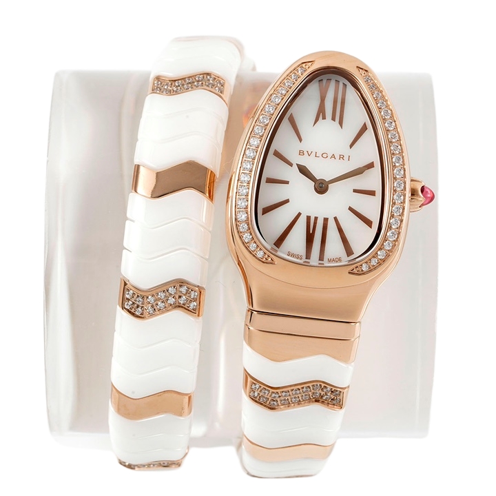 | BVLGARI Serpenti Spiga 35mm White Dial Rose Gold Diamond Bezel White Ceramics Rose Gold Diamond Strap 102202 SPP35WGDWCGD1.1T Ladies Woman | |