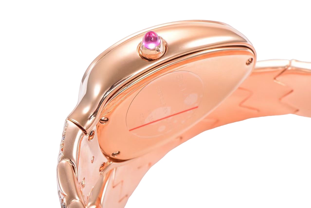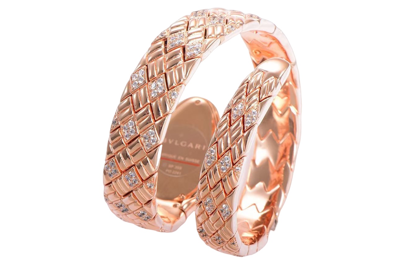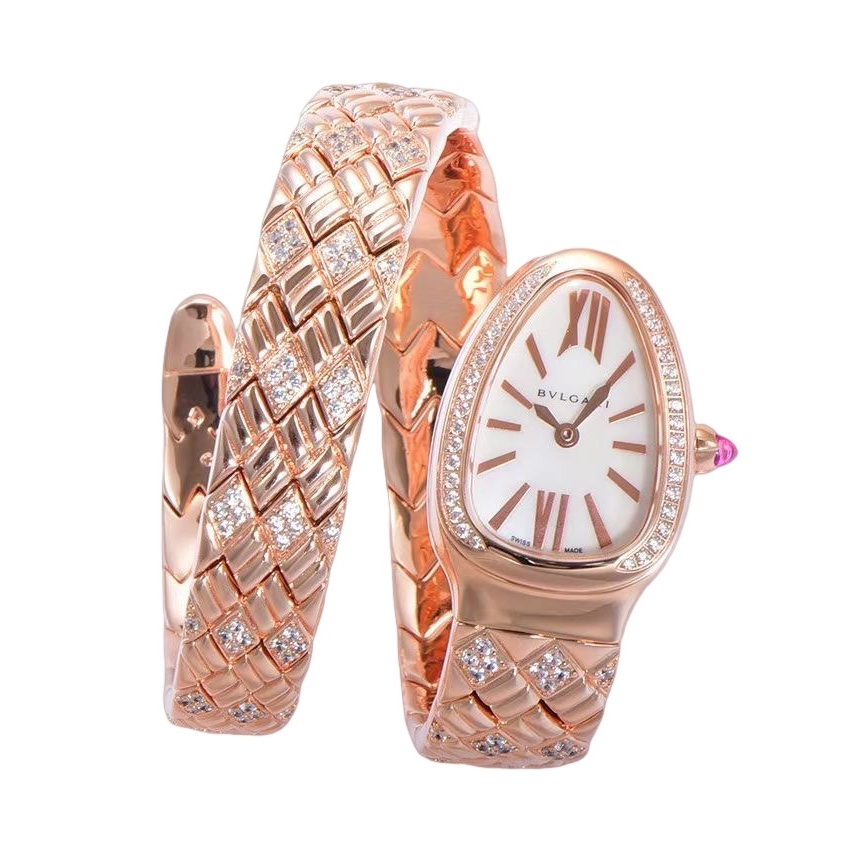 | BVLGARI Serpenti Spiga 35mm White Pearl Dial Rose Gold Diamond Bezel Rose Gold Diamond Strap 103656 Ladies Woman | |