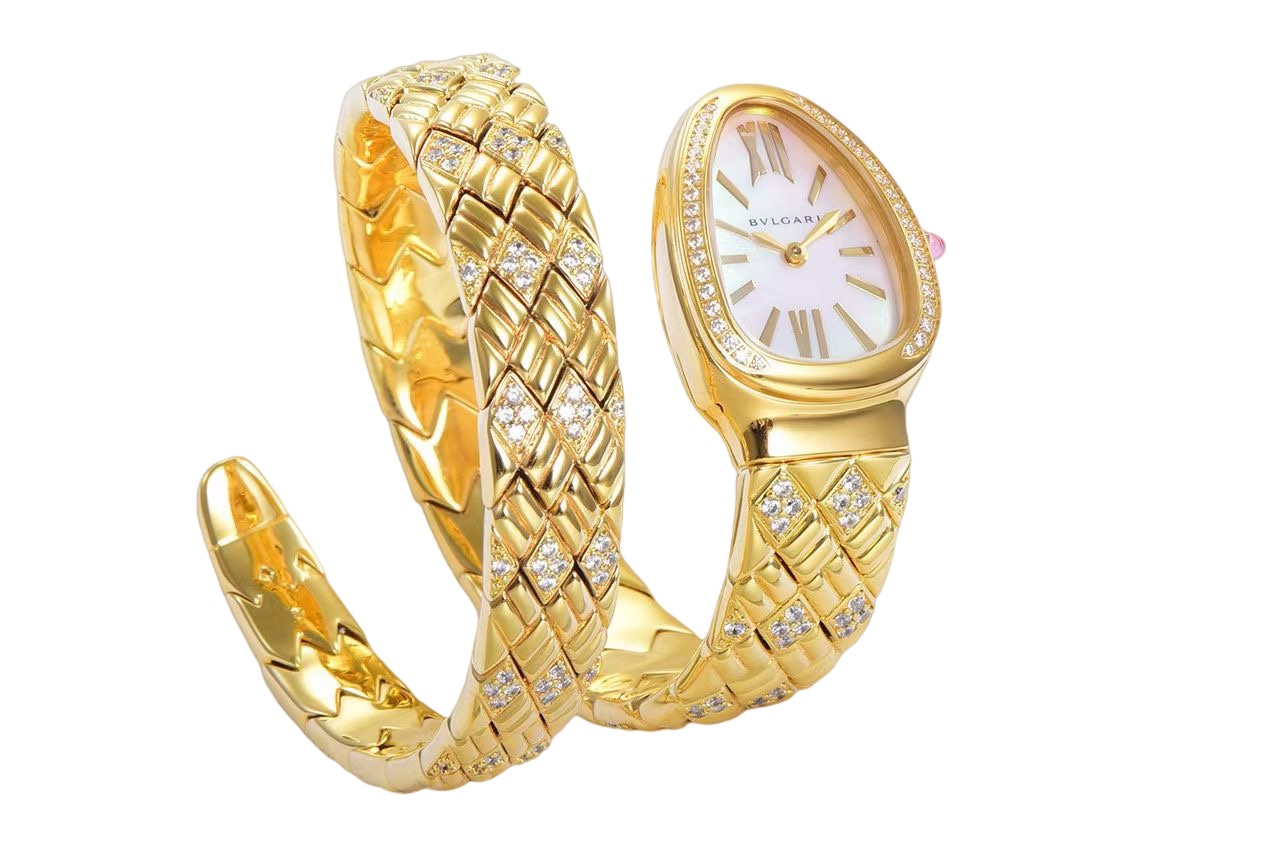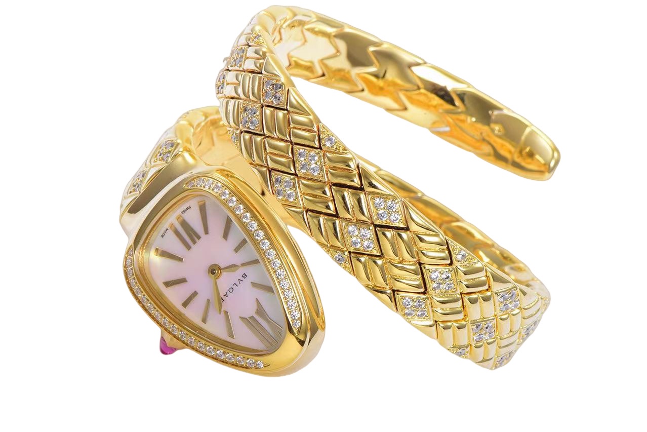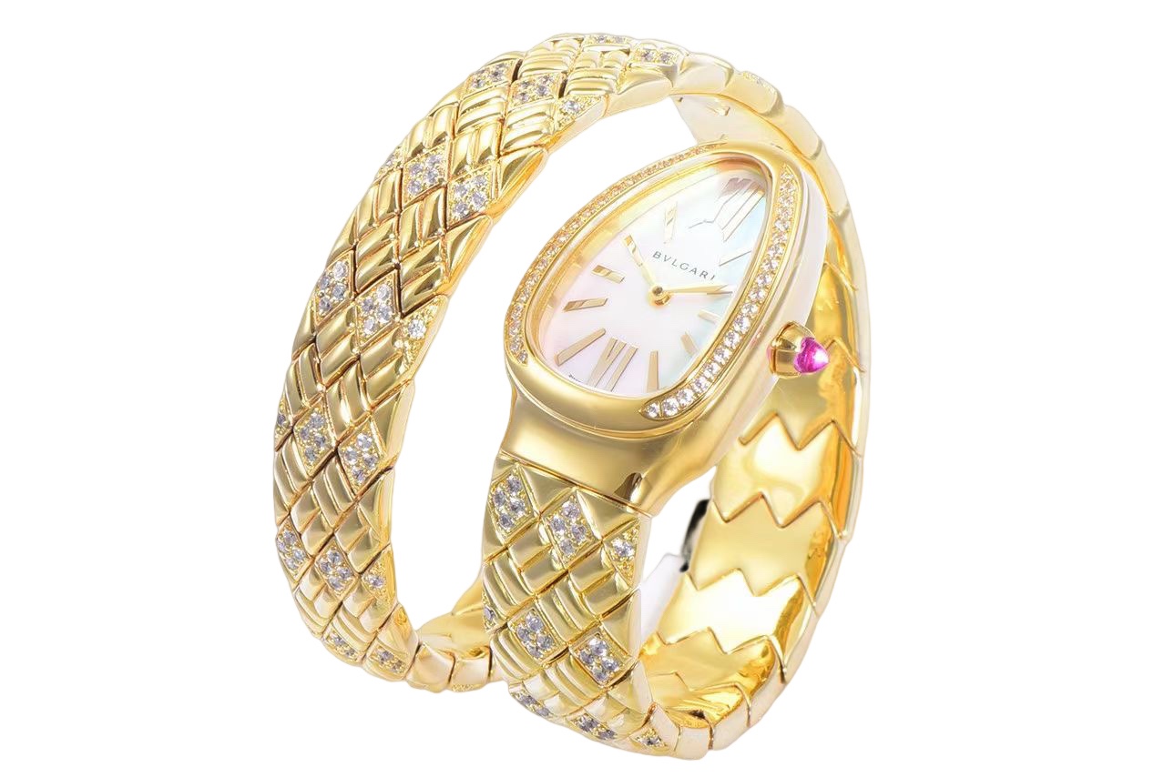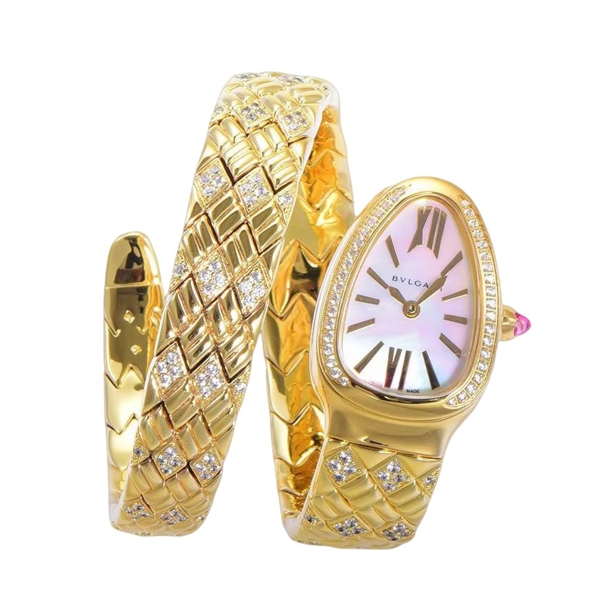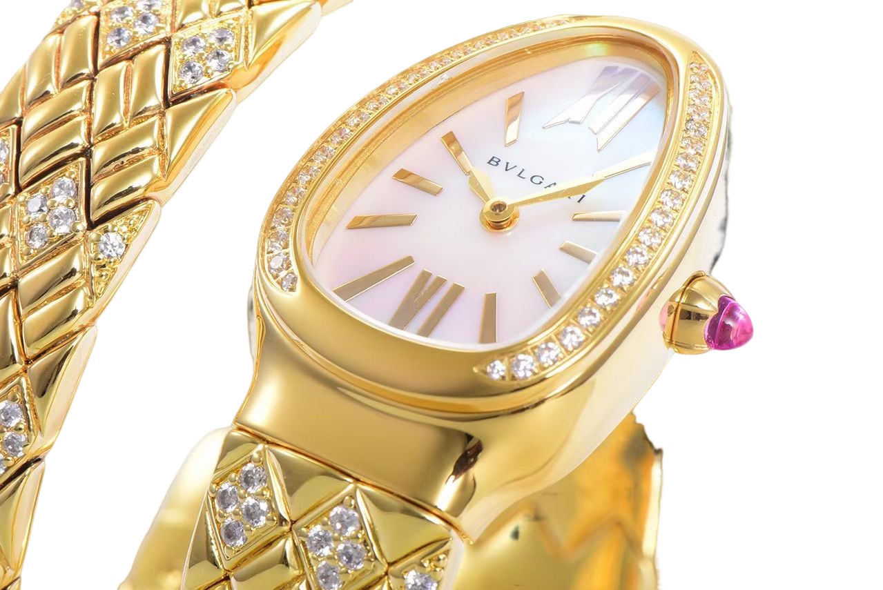 | BVLGARI Serpenti Spiga 35mm White Pearl Dial Yellow Gold Diamond Bezel Yellow Gold Diamond Strap 103747 Ladies Woman | |