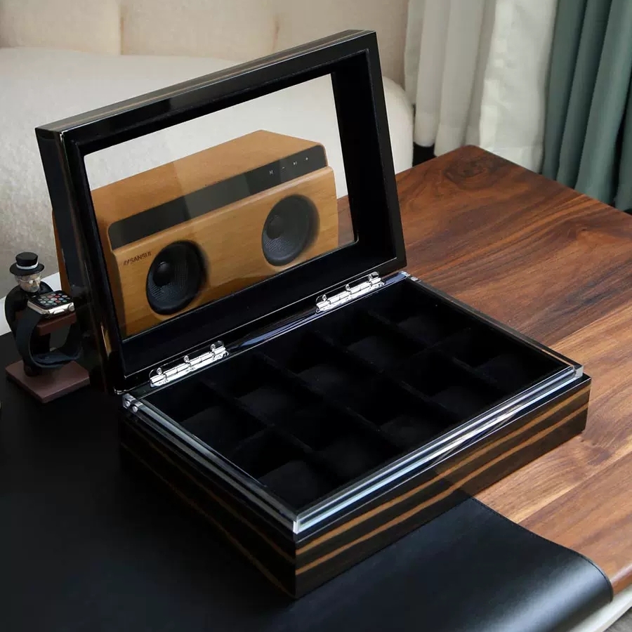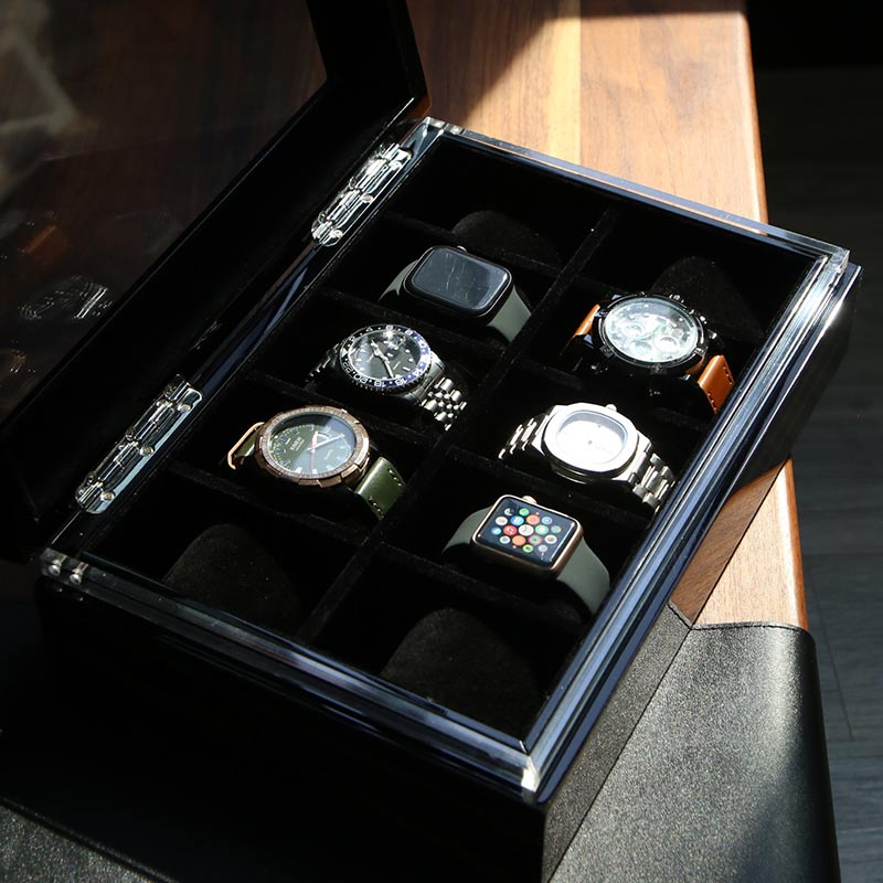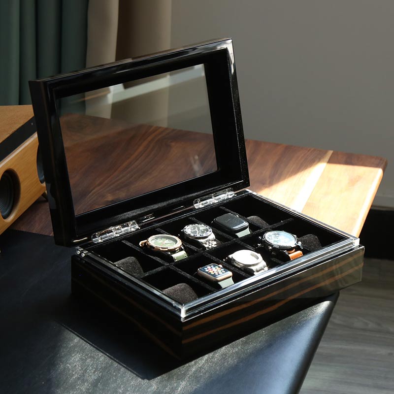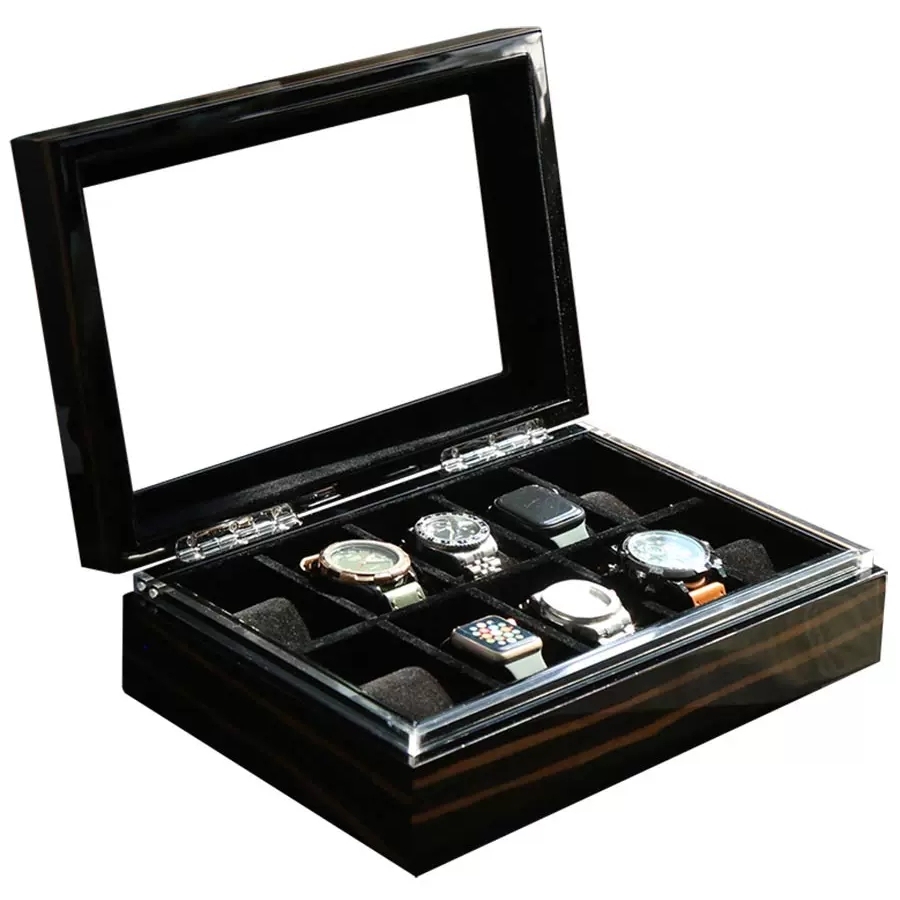 Ebony Technology Solid Wood Watch Collection Box,10 watch positions.