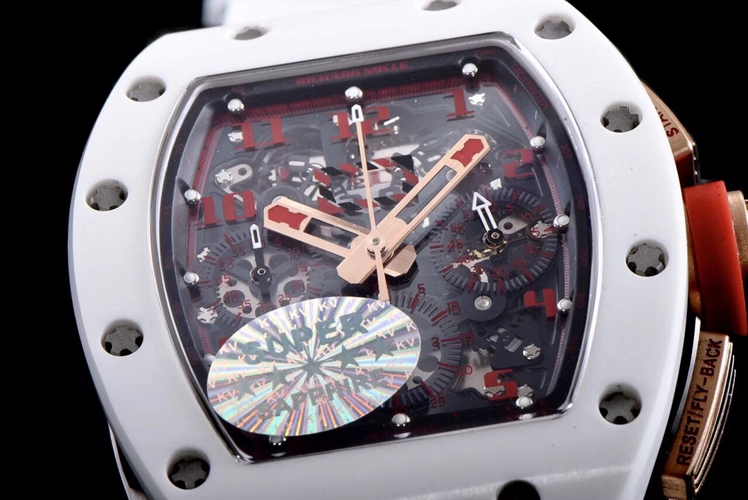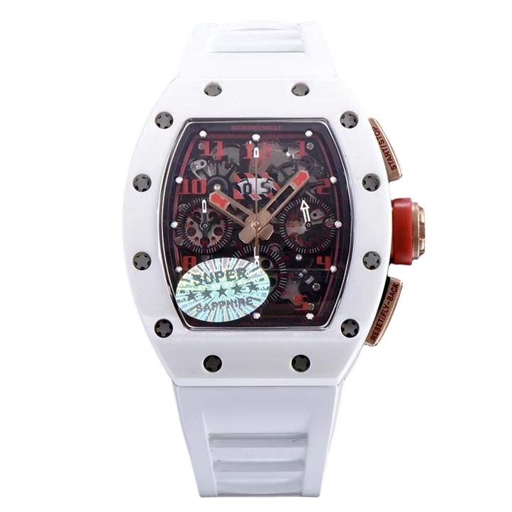 | Richard Mille RM 011 50mm X 40mm Rose Gold Dial White Ceramics Bezel White Rubber Strap | |