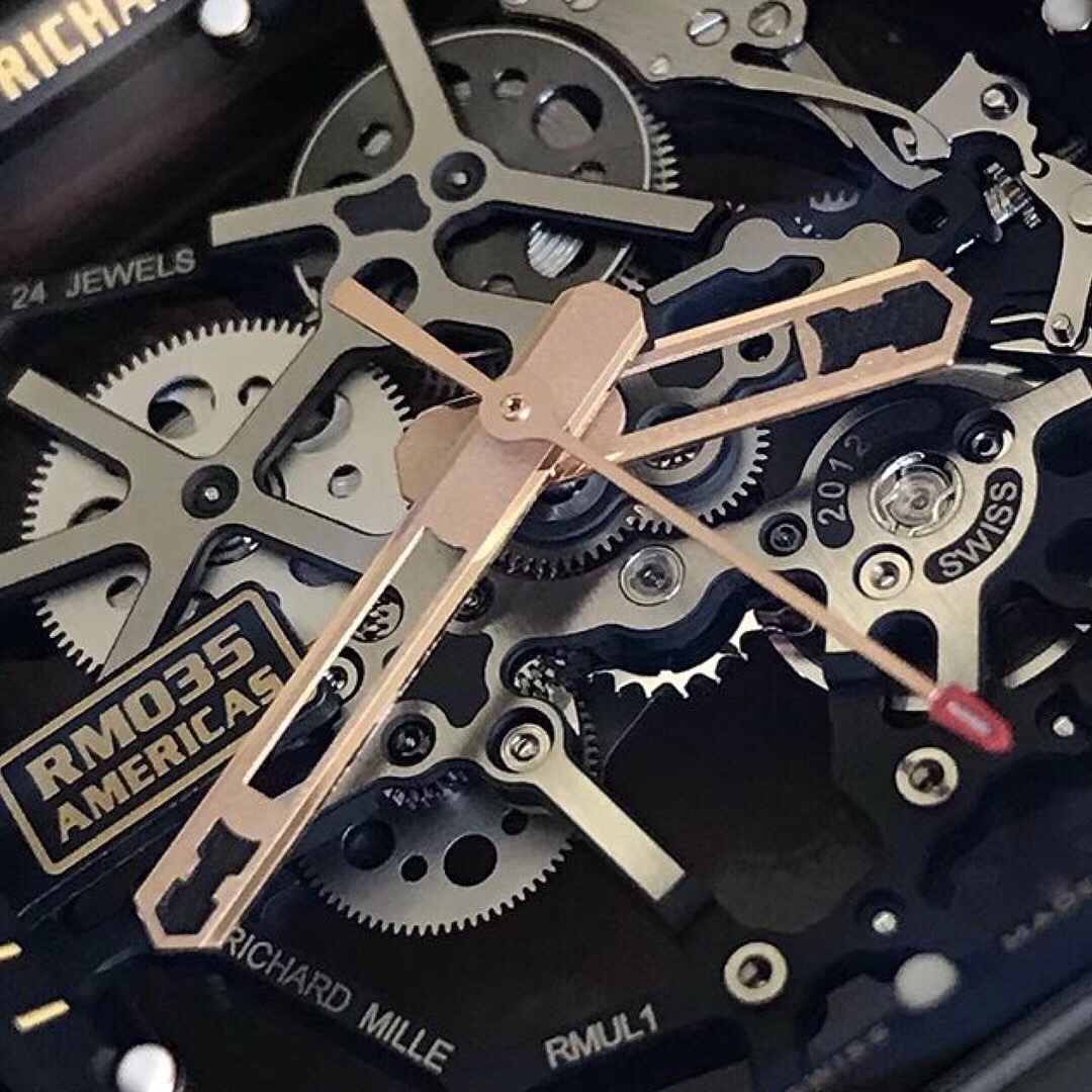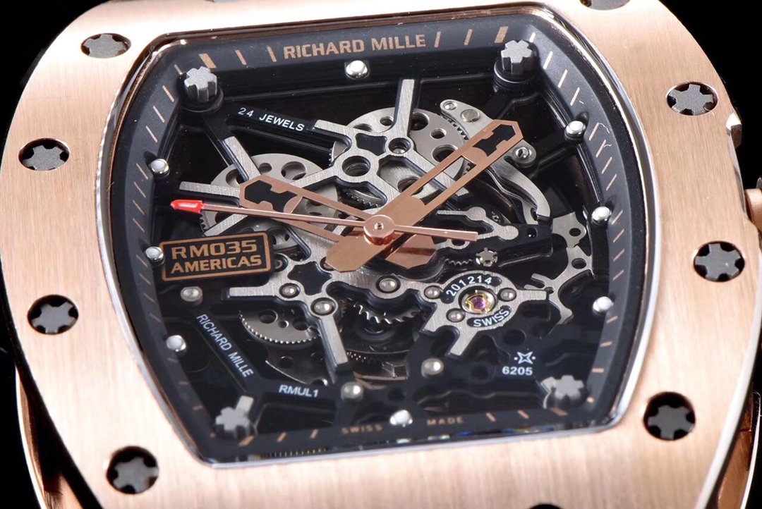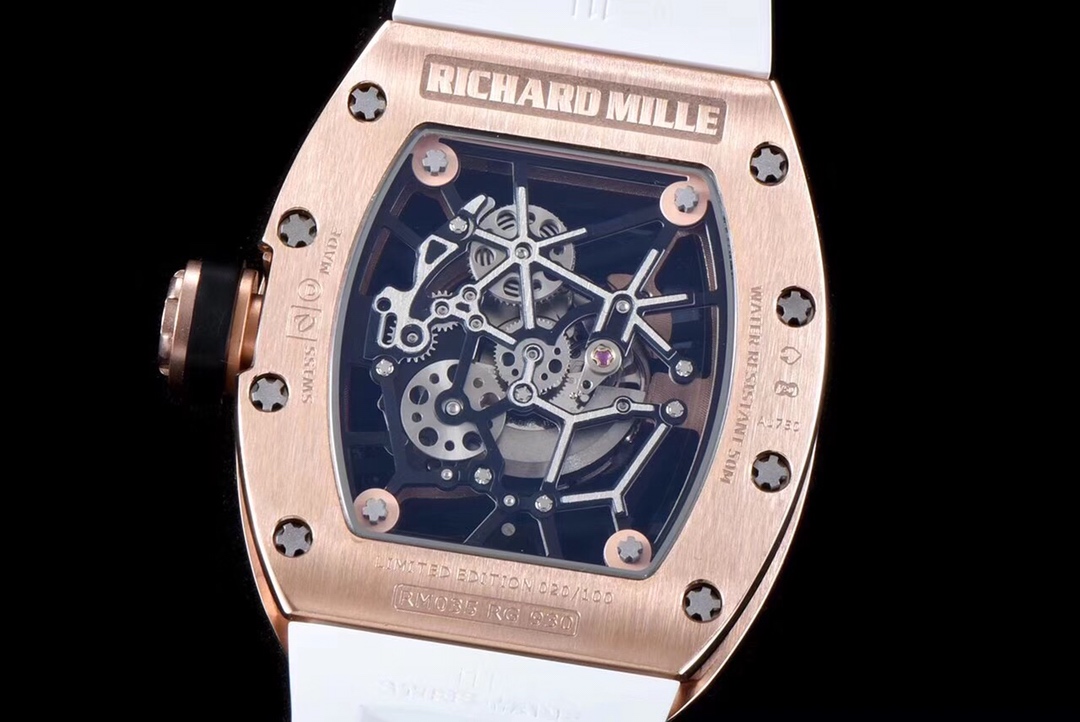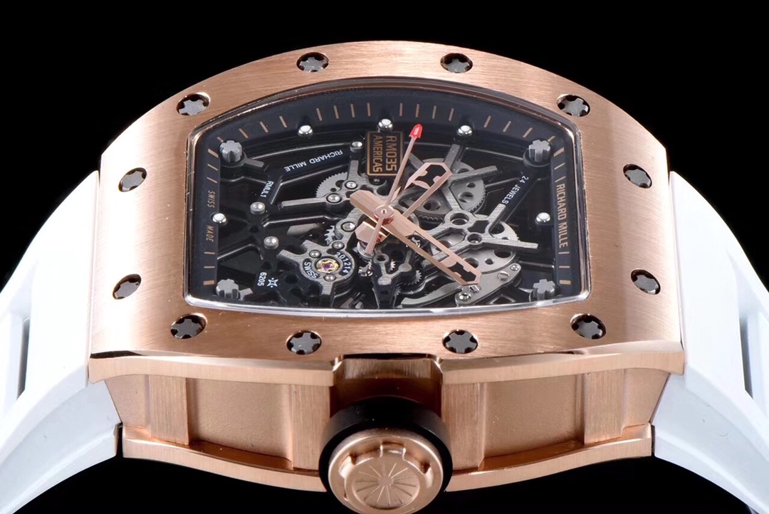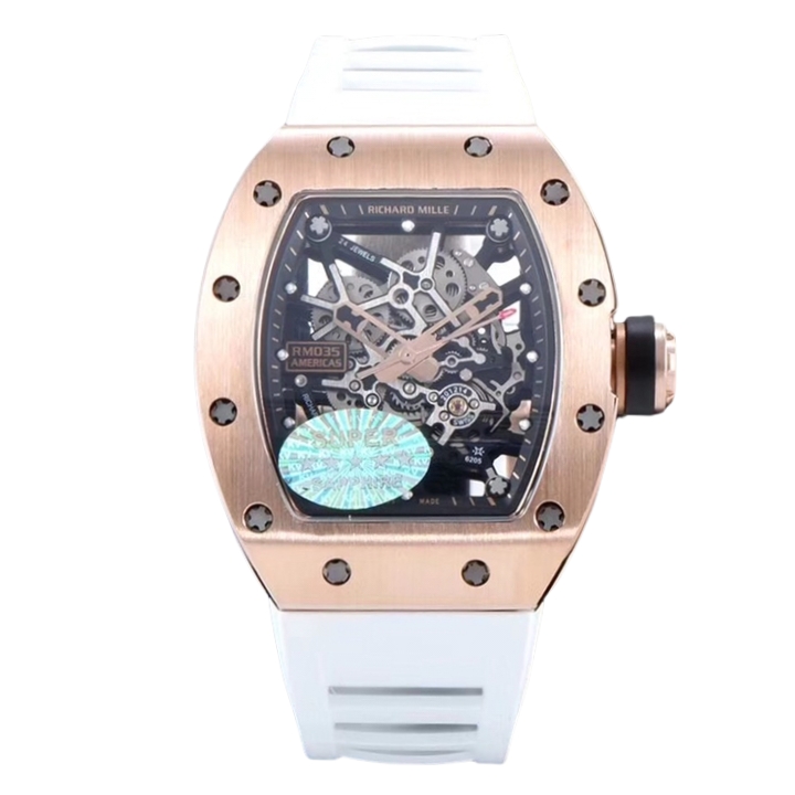 | Richard Mille RM 035 49.94mm x 44.50mm Hollow Dial Rose Gold Bezel White Rubber Strap | |