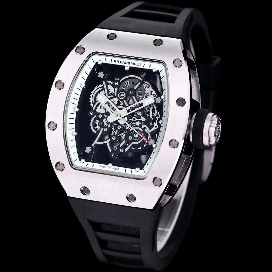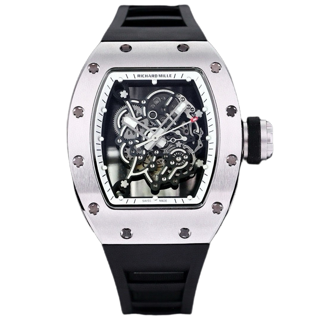 | Richard Mille RM 055 49.90mm x 42.70mm Grey Hollow Dial Titanium Bezel Black Rubber Strap | |