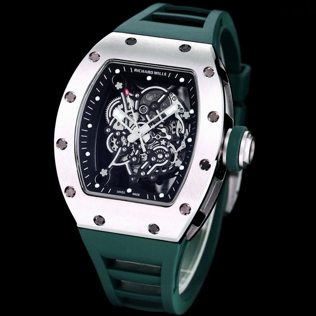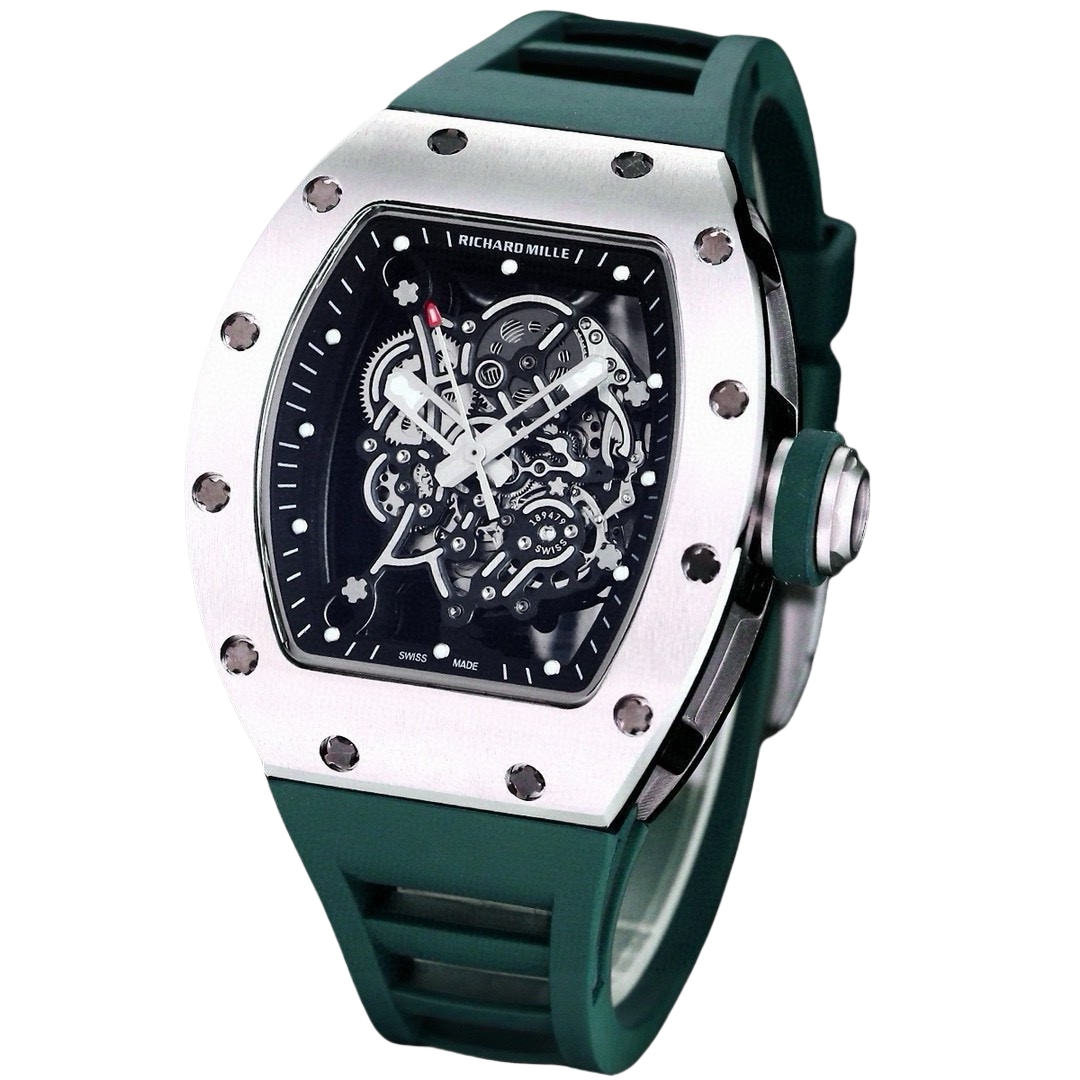 | Richard Mille RM 055 49.90mm x 42.70mm Grey Hollow Dial Titanium Bezel Green Rubber Strap | |