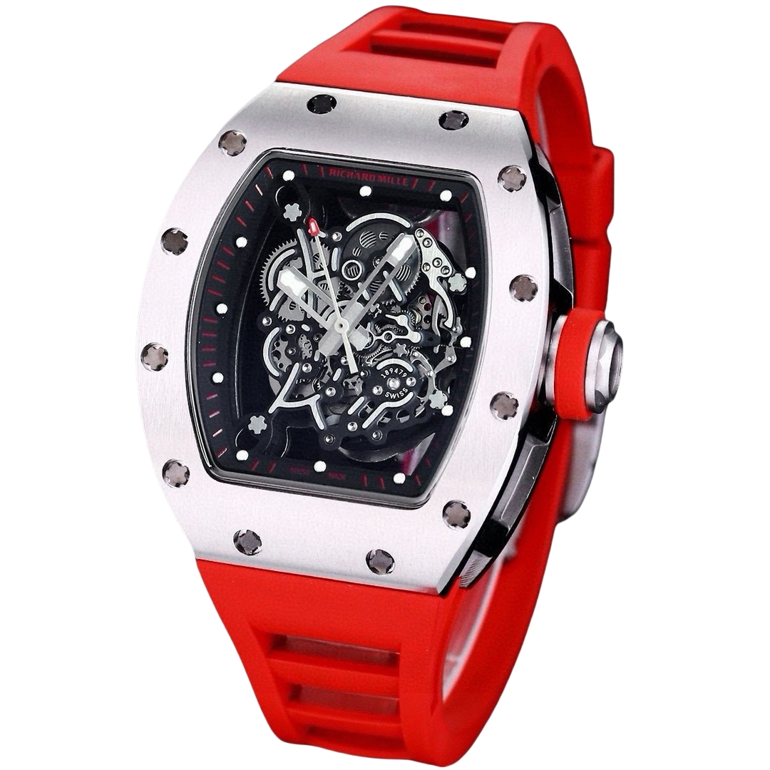 | Richard Mille RM 055 49.90mm x 42.70mm Grey Hollow Dial Titanium Bezel Red Rubber Strap | |