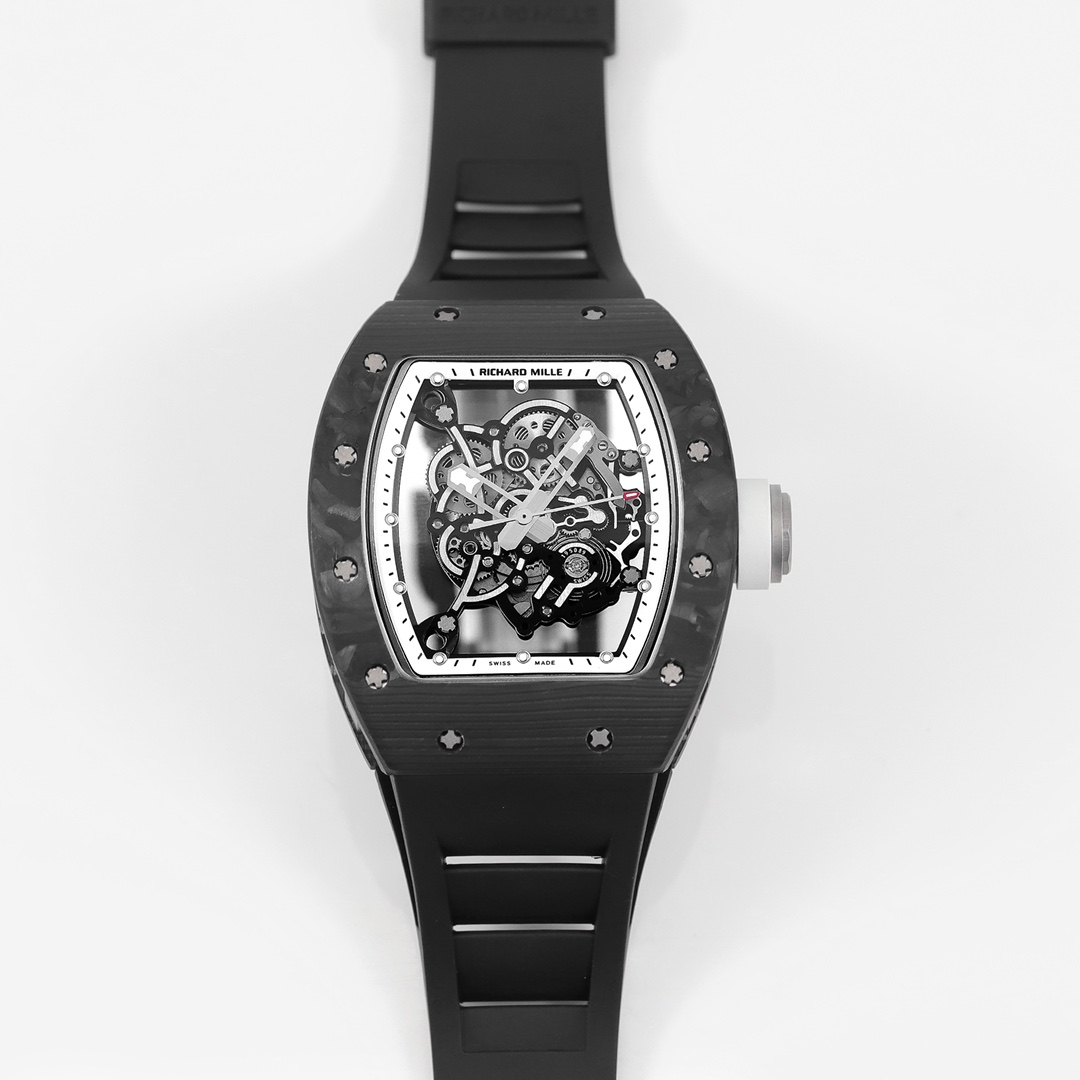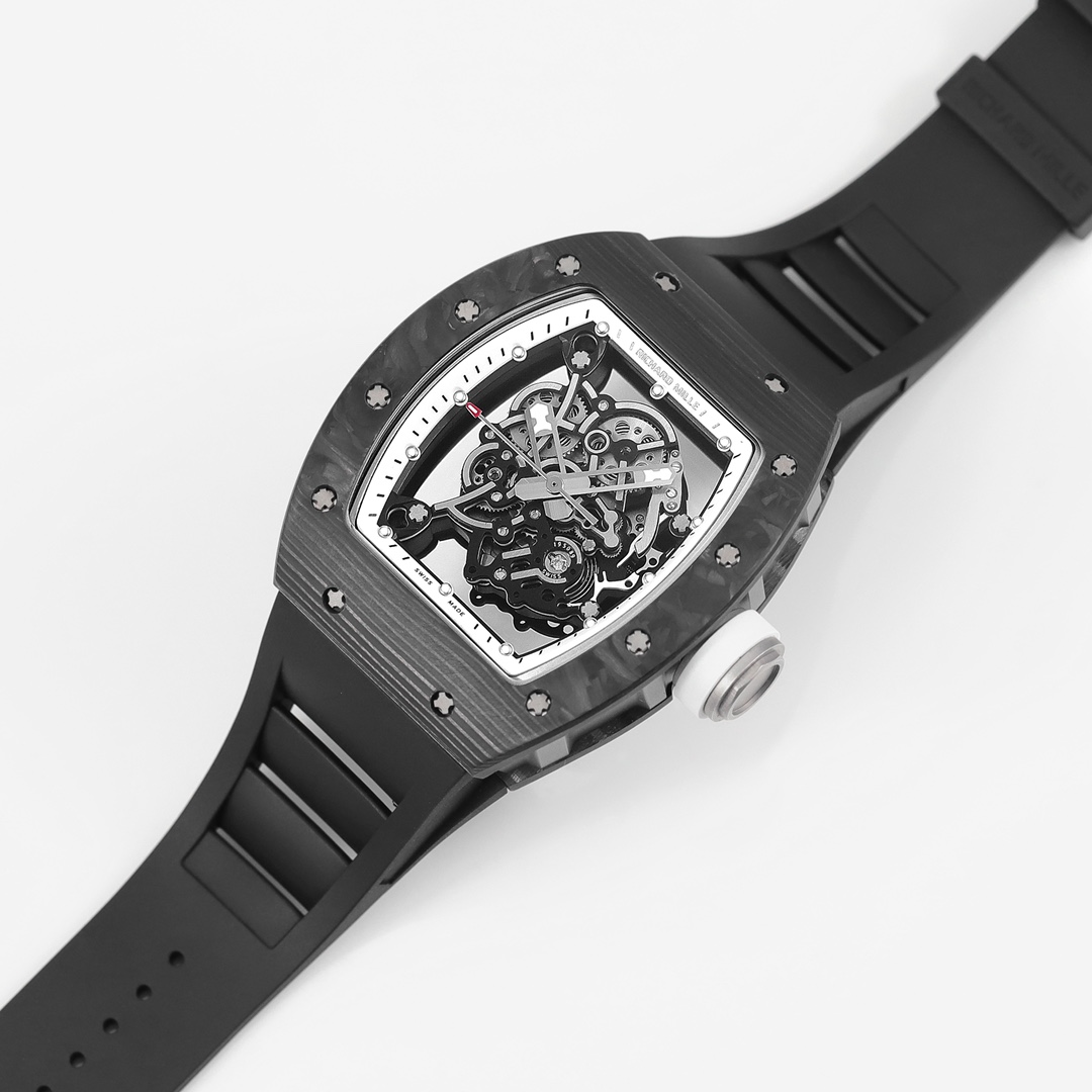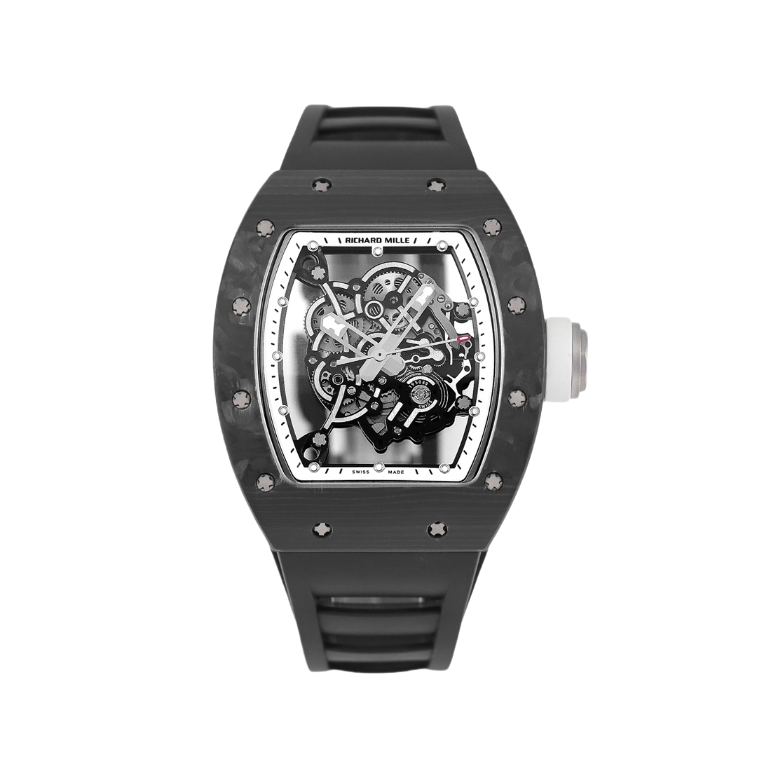 | Richard Mille RM 055 49.90mm x 42.70mm Grey Hollow Dial White Black Carbon Fiber Bezel Black Rubber Strap | |