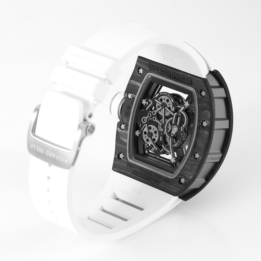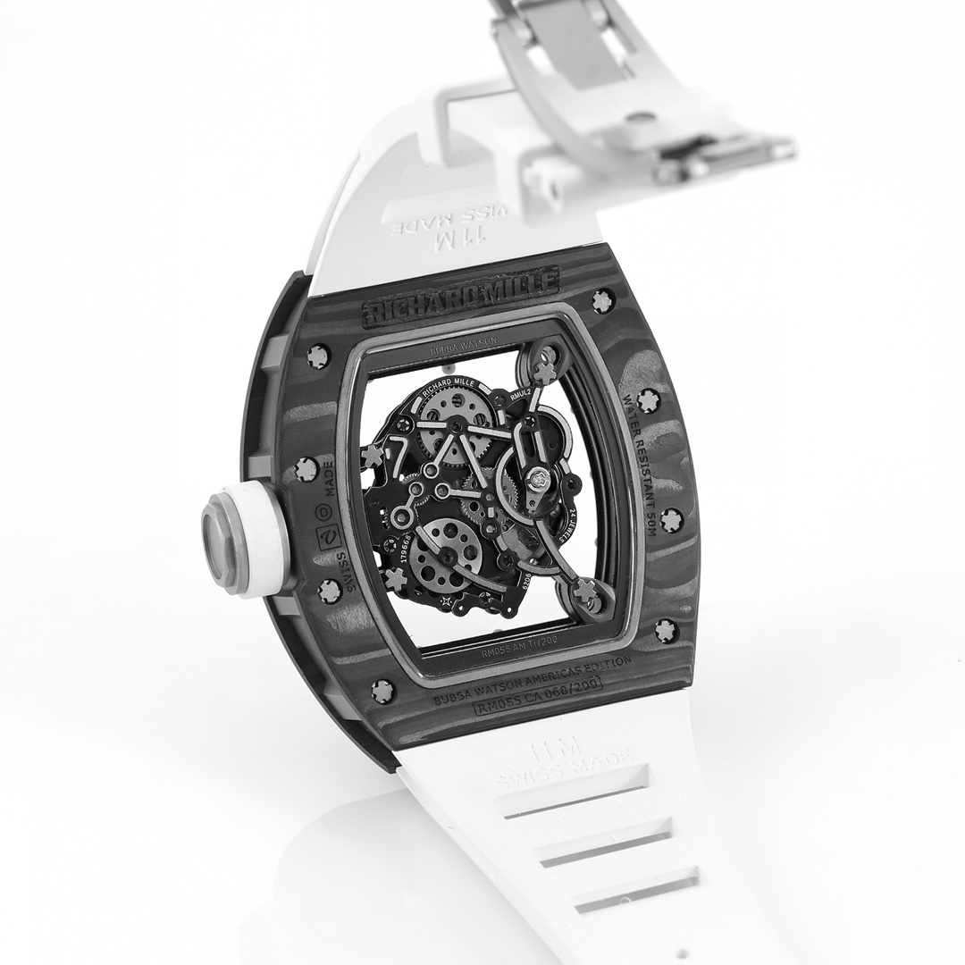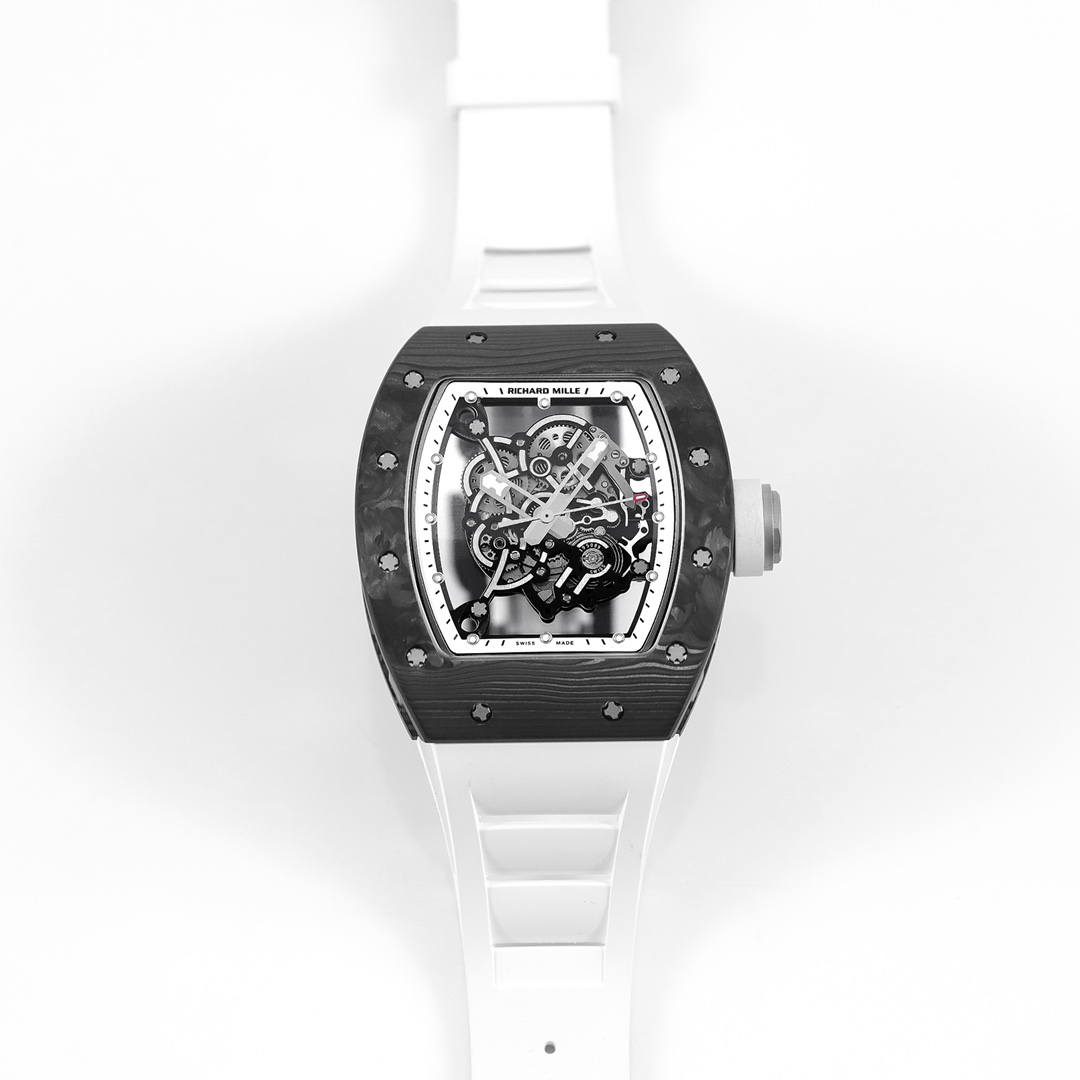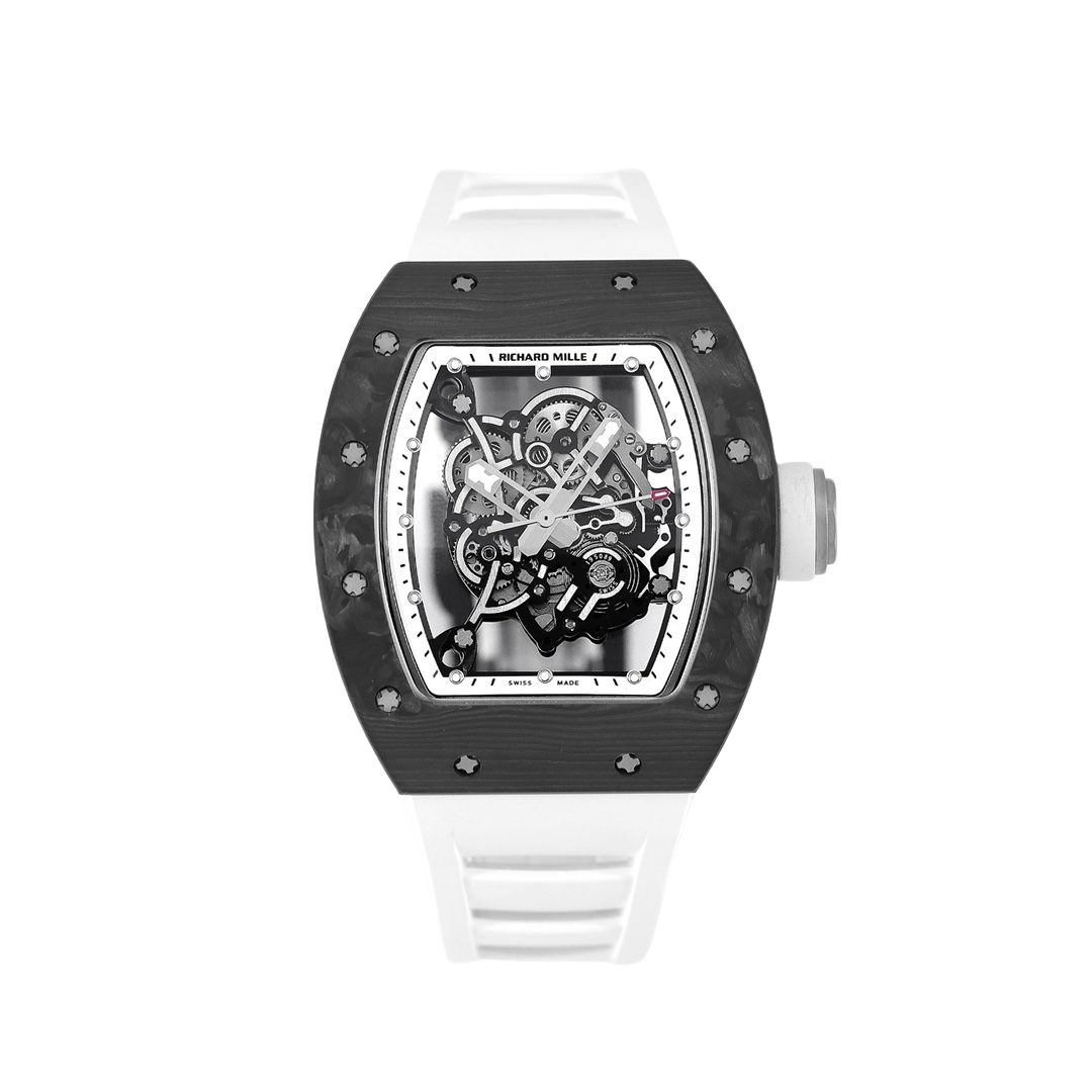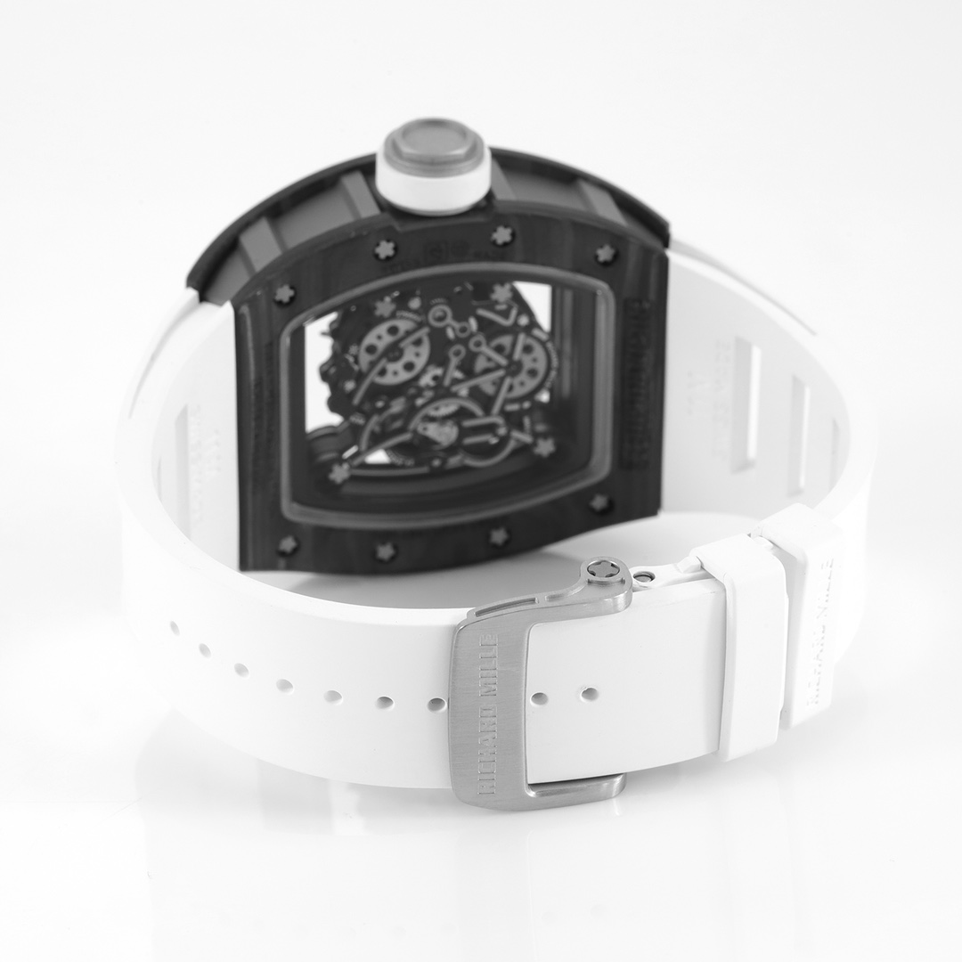 | Richard Mille RM 055 49.90mm x 42.70mm Grey Hollow Dial White Black Carbon Fiber Bezel White Rubber Strap | |