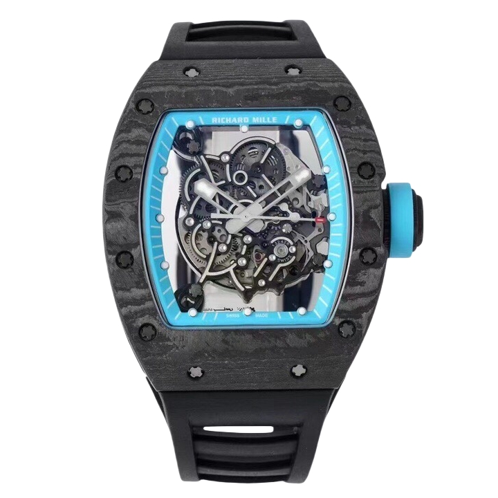 | Richard Mille RM 055 49.90mm x 42.70mm Hollow Dial Tiffany Blue Black Carbon Fiber Bezel Black Rubber Strap | |