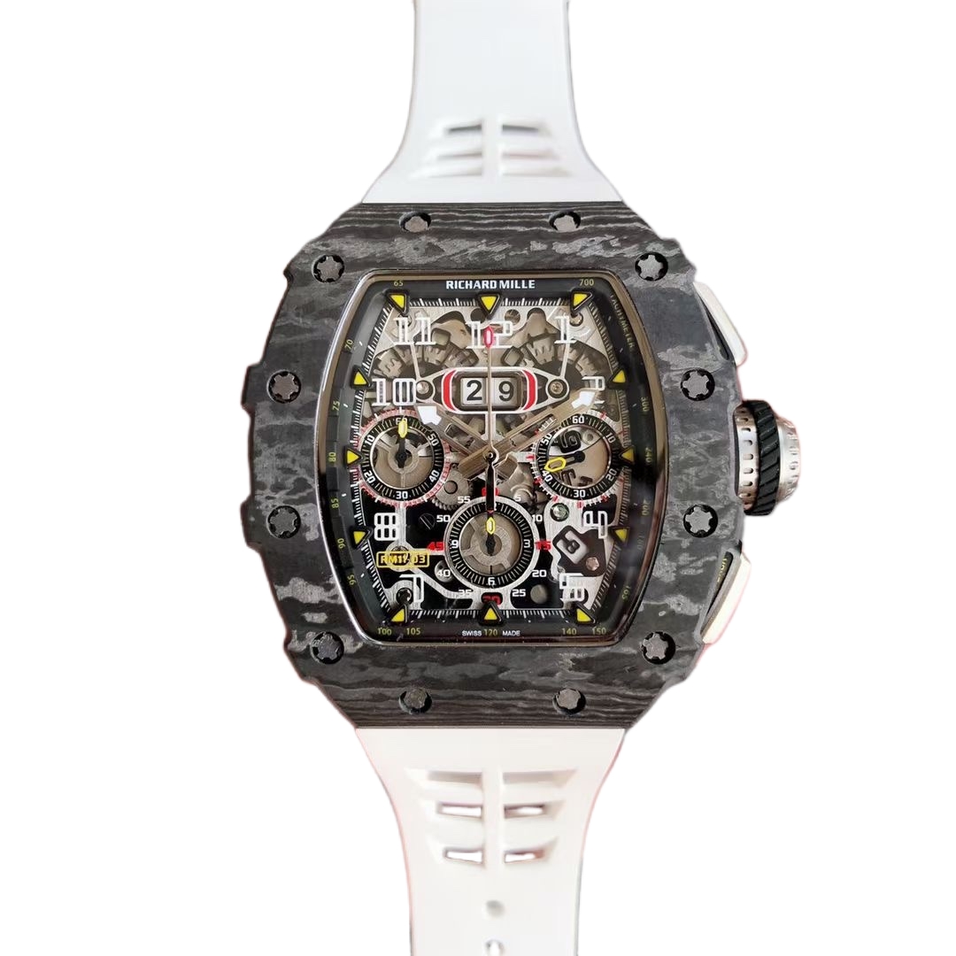 | Richard Mille RM 11-03 49.94mm x 44.50mm Dial Black Carbon Fiber Bezel White Rubber Strap | |