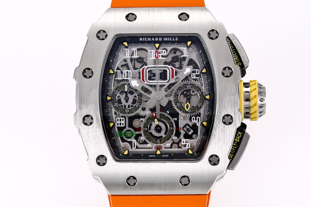 | Richard Mille RM 11-03 49.94mm x 44.50mm Dial Titanium Steel Bezel Orange Rubber Strap | |