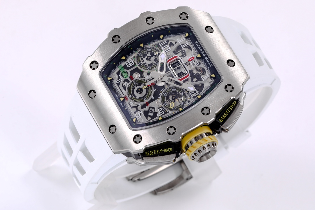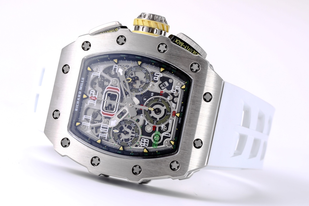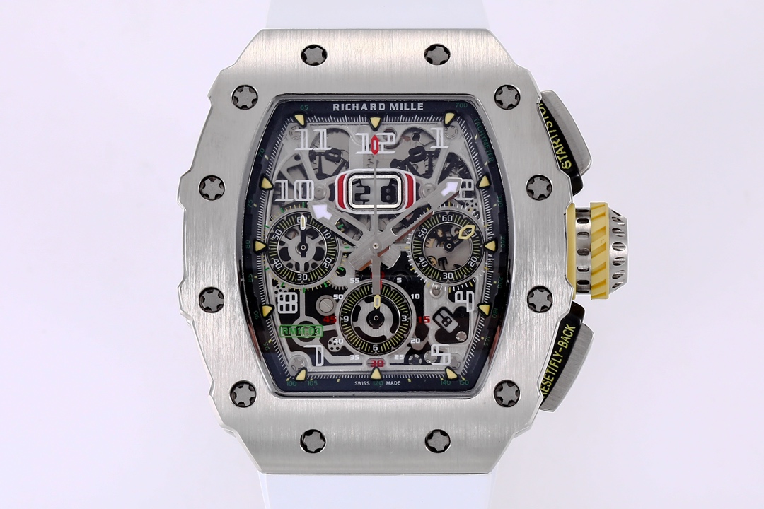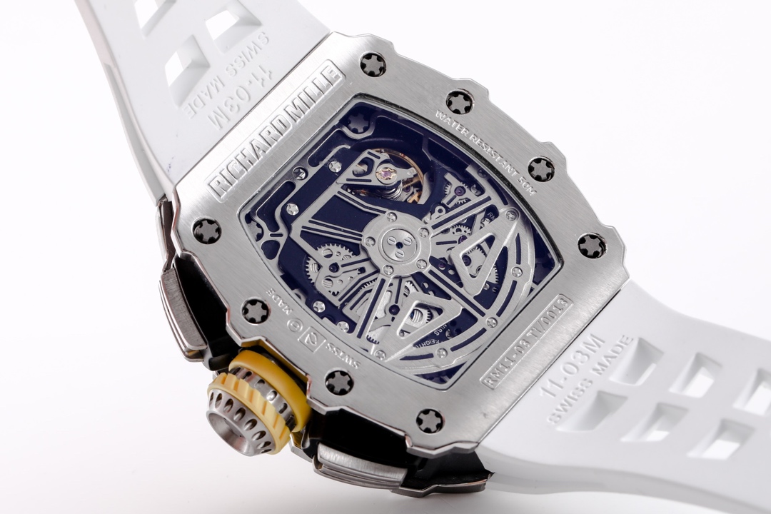| Richard Mille RM 11-03 49.94mm x 44.50mm Dial Titanium Steel Bezel White Rubber Strap | |