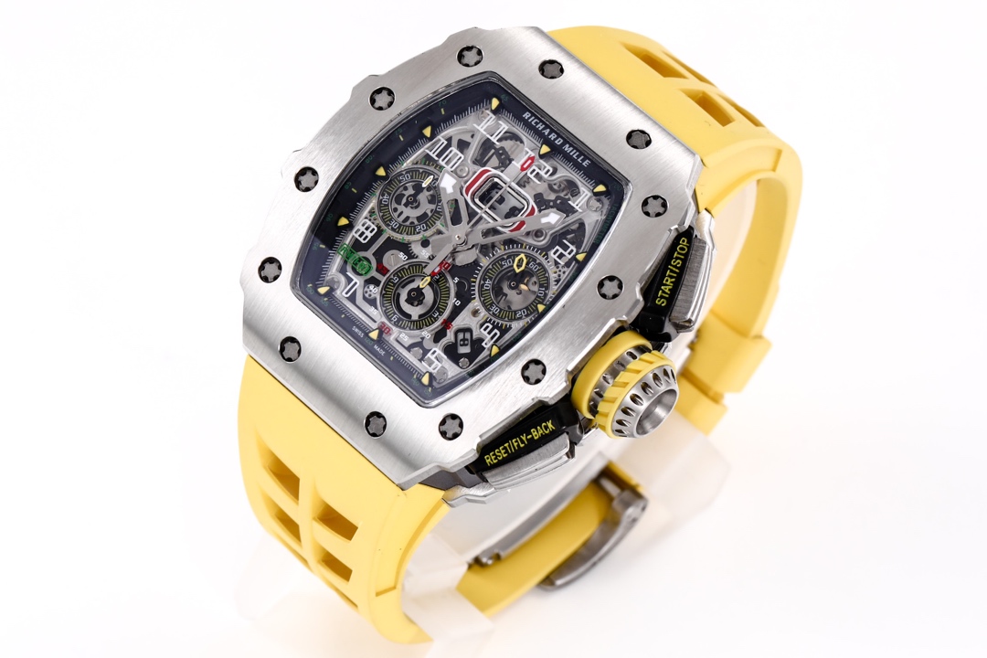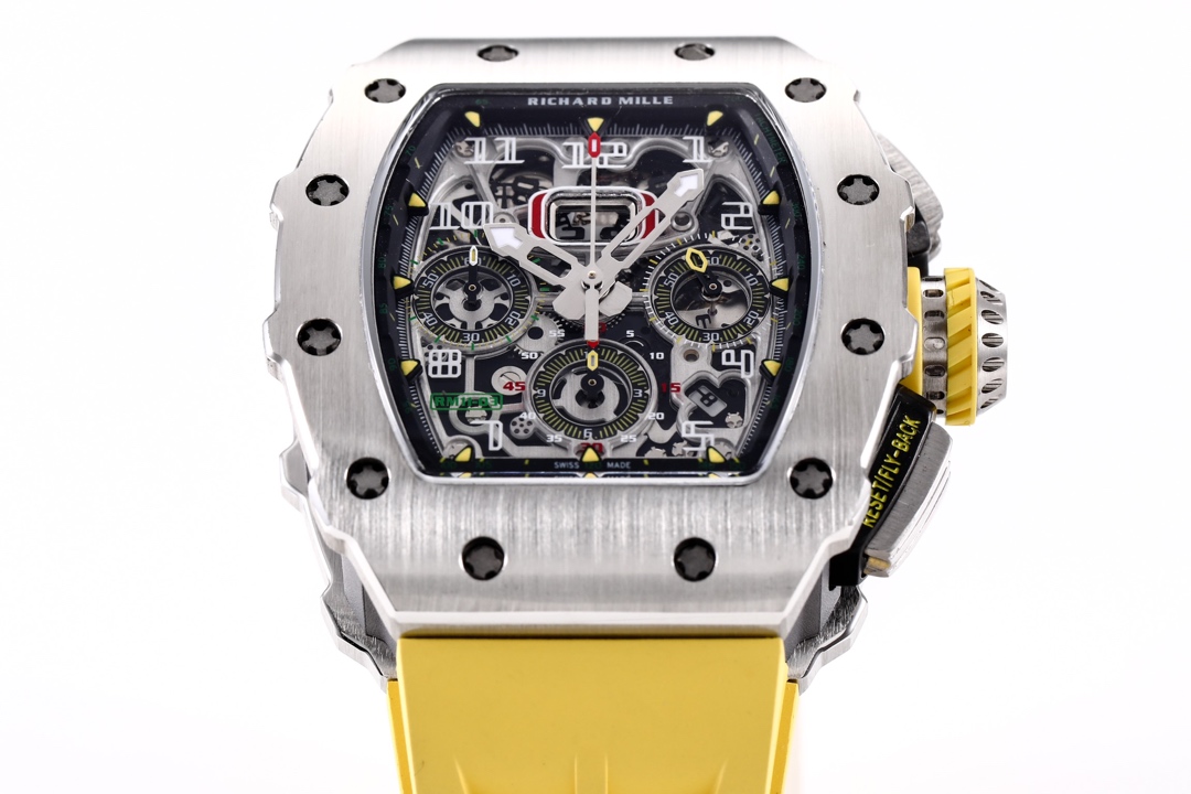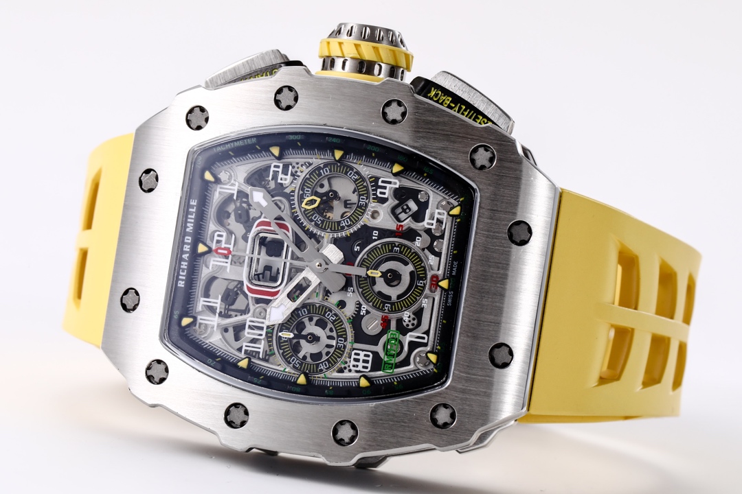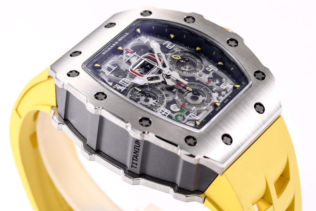 | Richard Mille RM 11-03 49.94mm x 44.50mm Dial Titanium Steel Bezel Yellow Rubber Strap | |