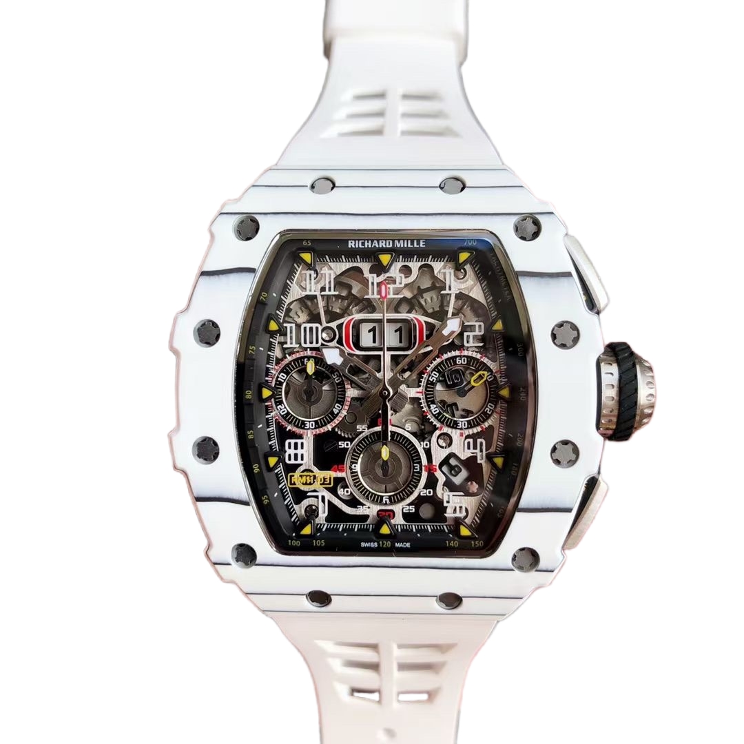 | Richard Mille RM 11-03 49.94mm x 44.50mm Dial White Carbon Fiber Bezel White Rubber Strap | |