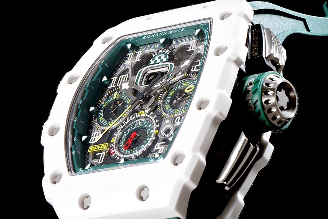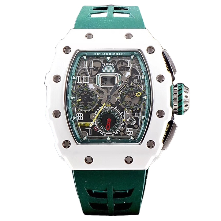 | Richard Mille RM 11-03 49.94mm x 44.50mm Grey Green Dial White Ceramics Bezel Green Rubber Strap | |