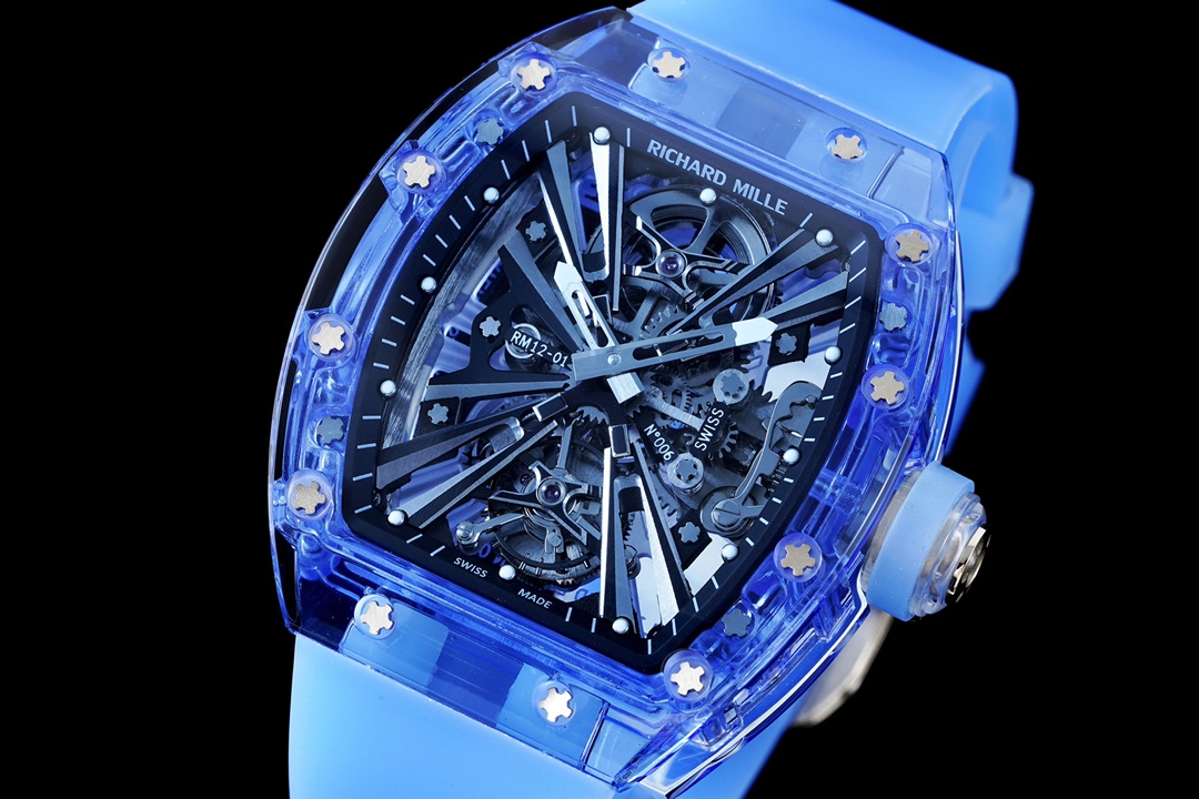 | Richard Mille RM 12-01 44.50mm x 49.94mm Hollow Dial Blue Transparent Bezel Blue Rubber Strap | |