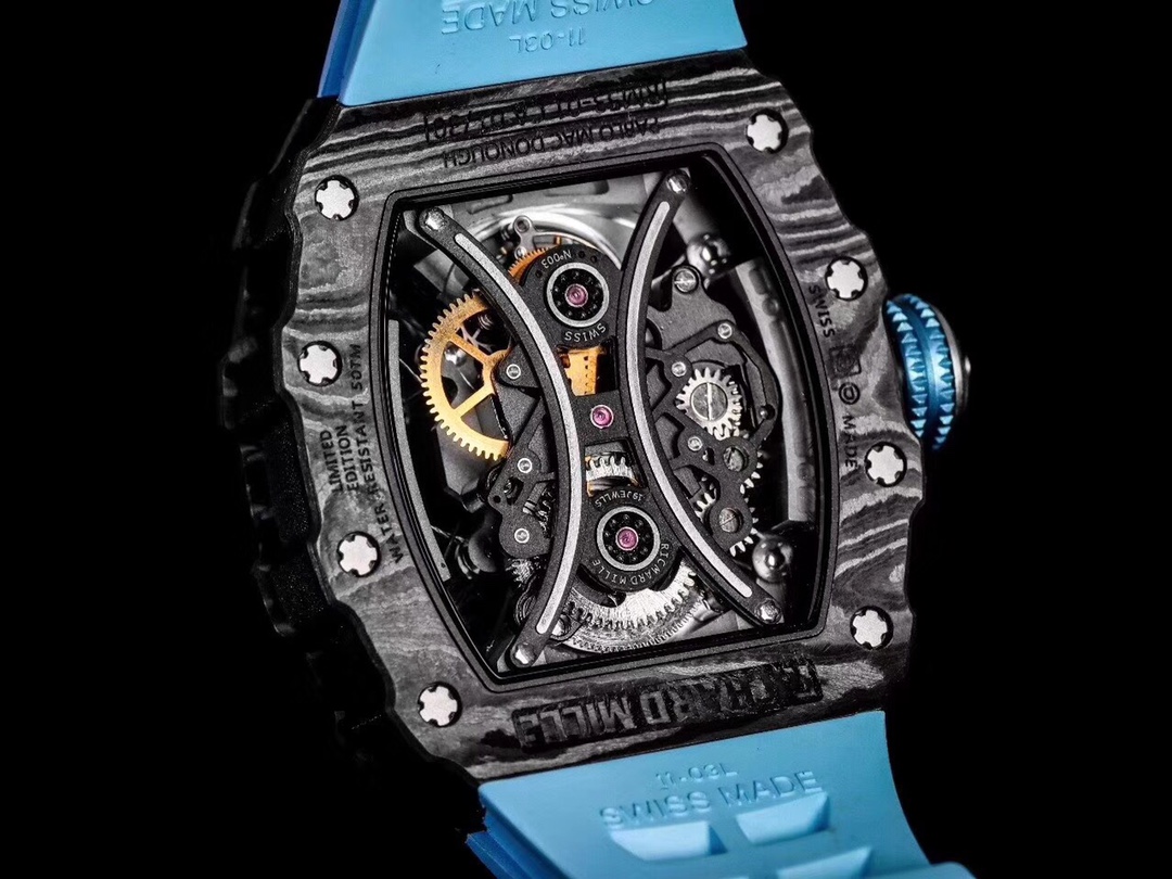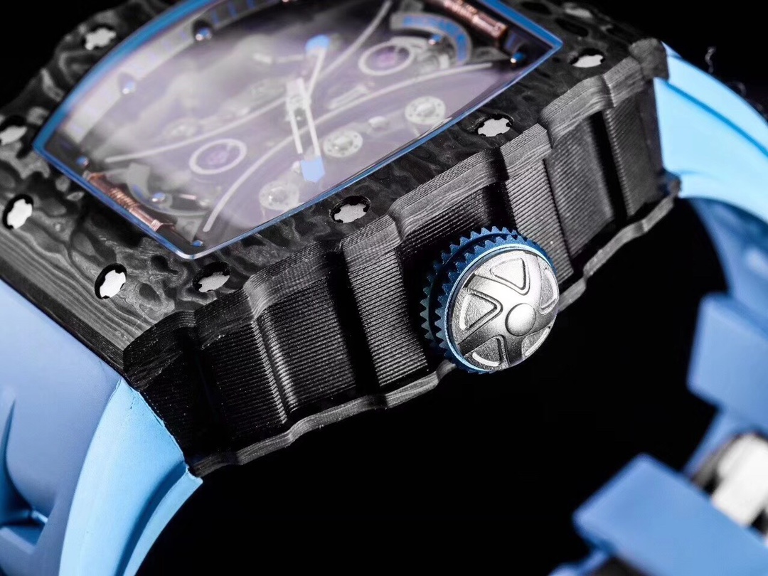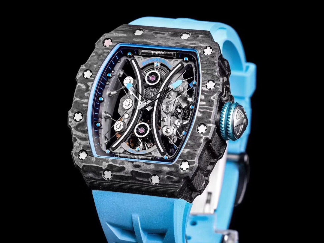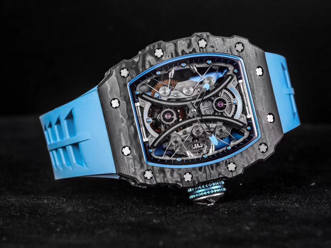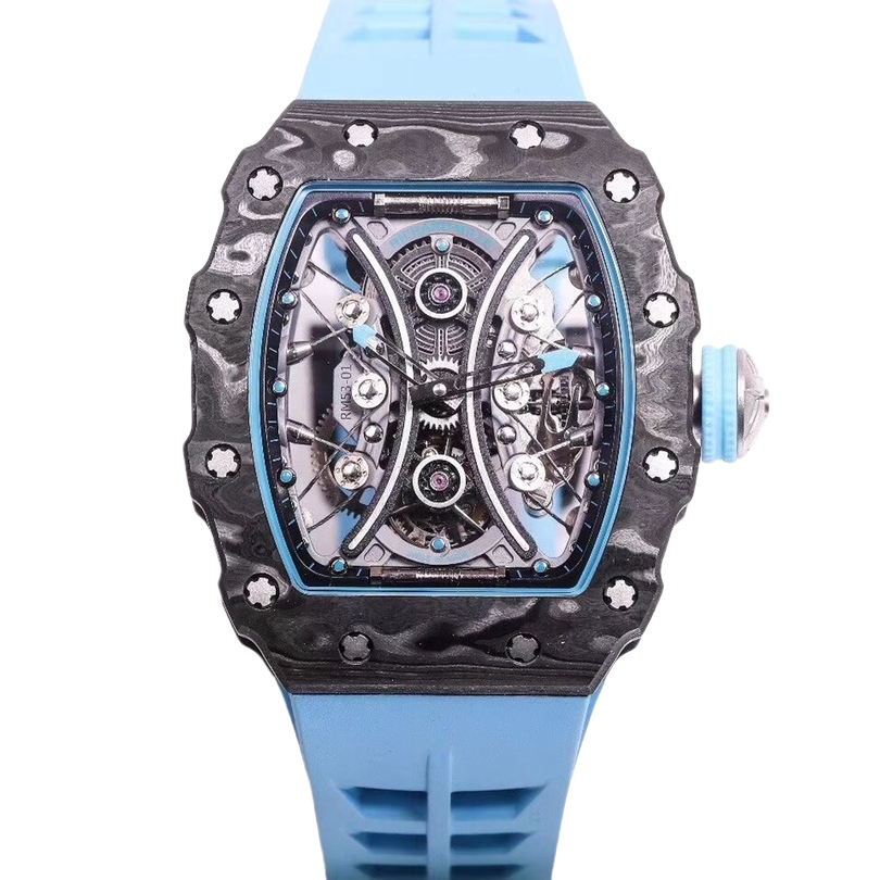 | Richard Mille RM 53-01 44.50mm x 49.94mm Hollow Dial Black Carbon Fiber Bezel Blue Rubber Strap Pablo Mac Donough | |