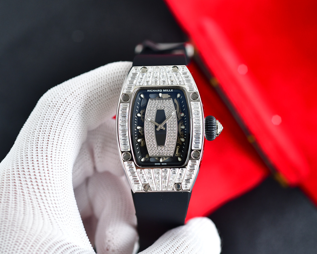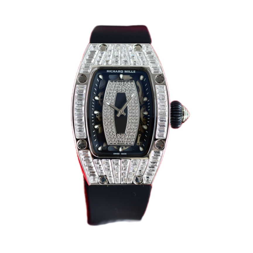 | Richard Mille RM07-01 45.66mm x 31.40mm Diamond Black Dial Platinum Square Diamond Bezel WhiteBlack Rubber Strap Ladies Woman | |