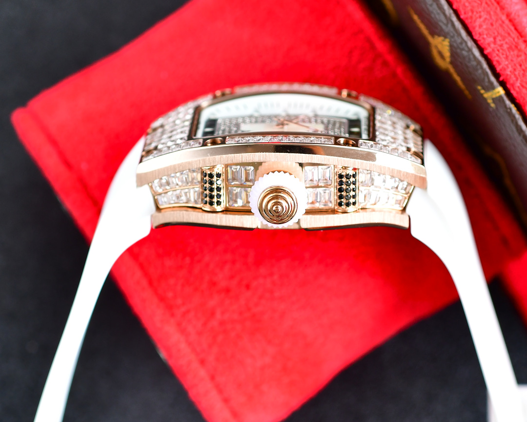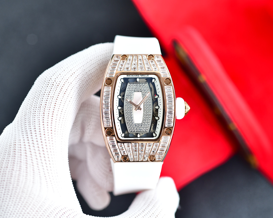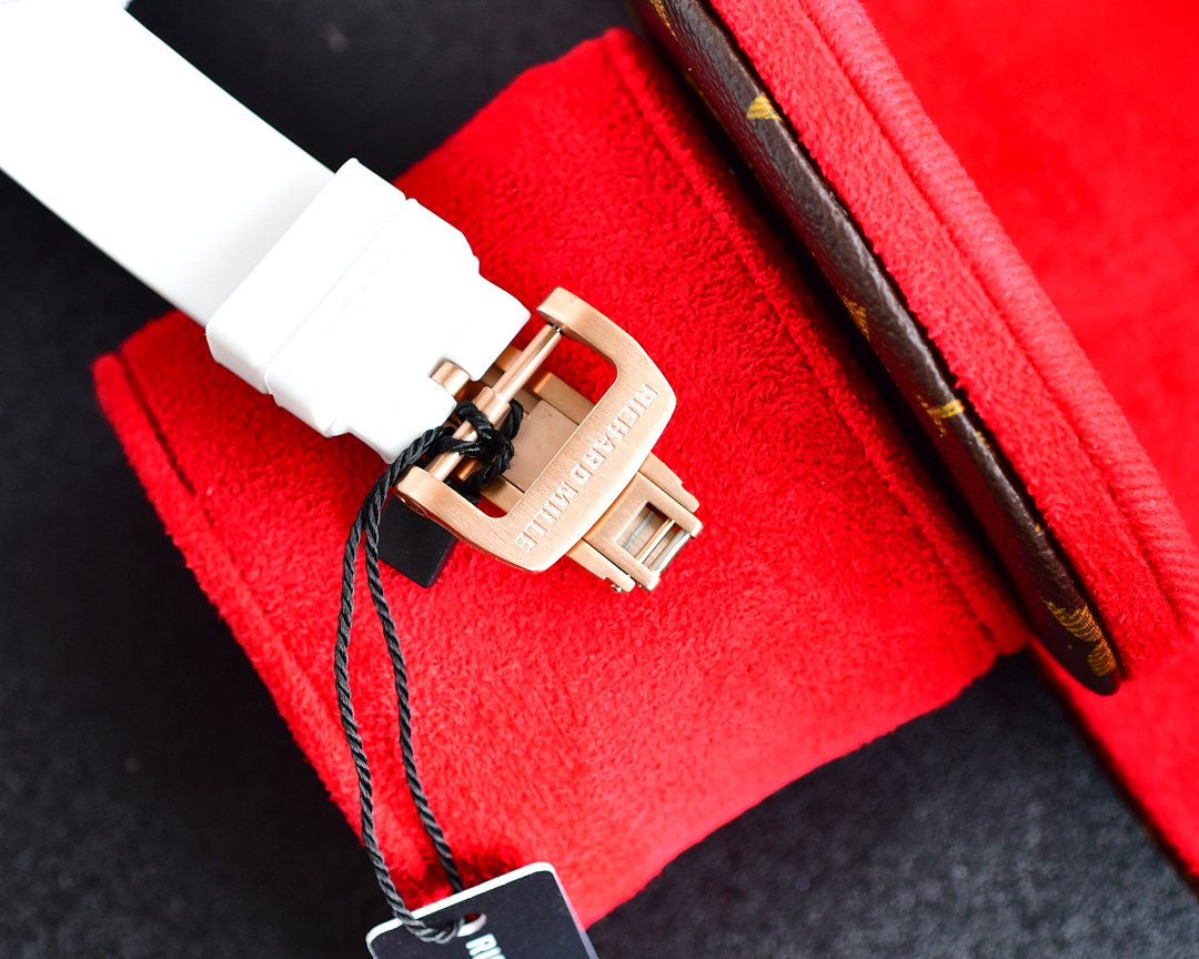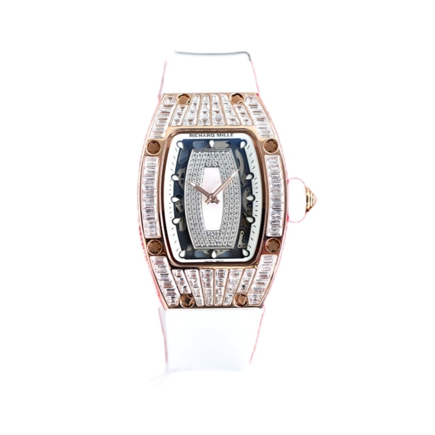 | Richard Mille RM07-01 45.66mm x 31.40mm Diamond White Dial Rose Gold Square Diamond Bezel White Rubber Strap Ladies Woman | |