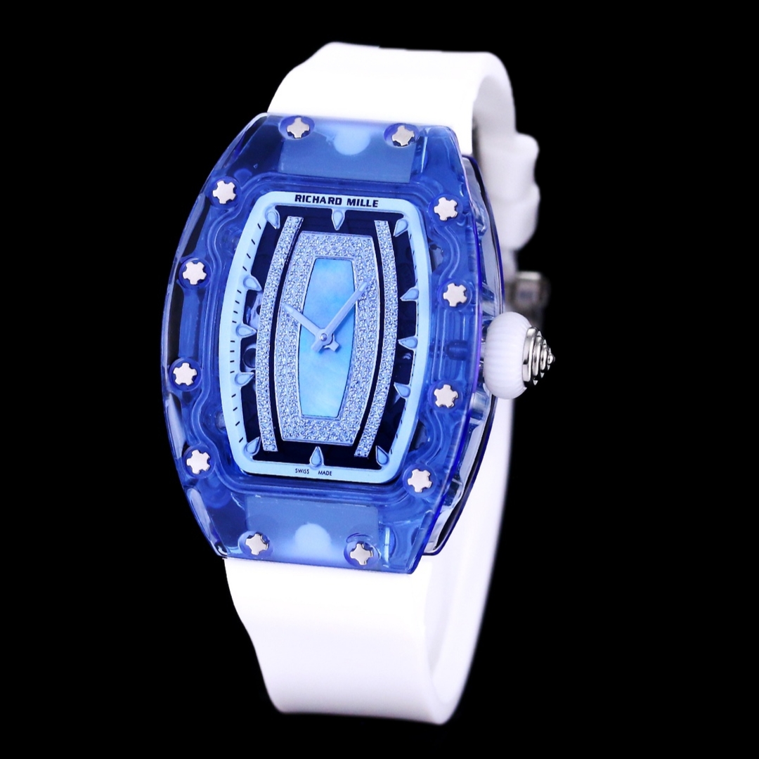 | Richard Mille RM07-02 45.66mm x 31.40mm Diamond Dial Blue Transparent Bezel White Rubber Strap Ladies Woman | |