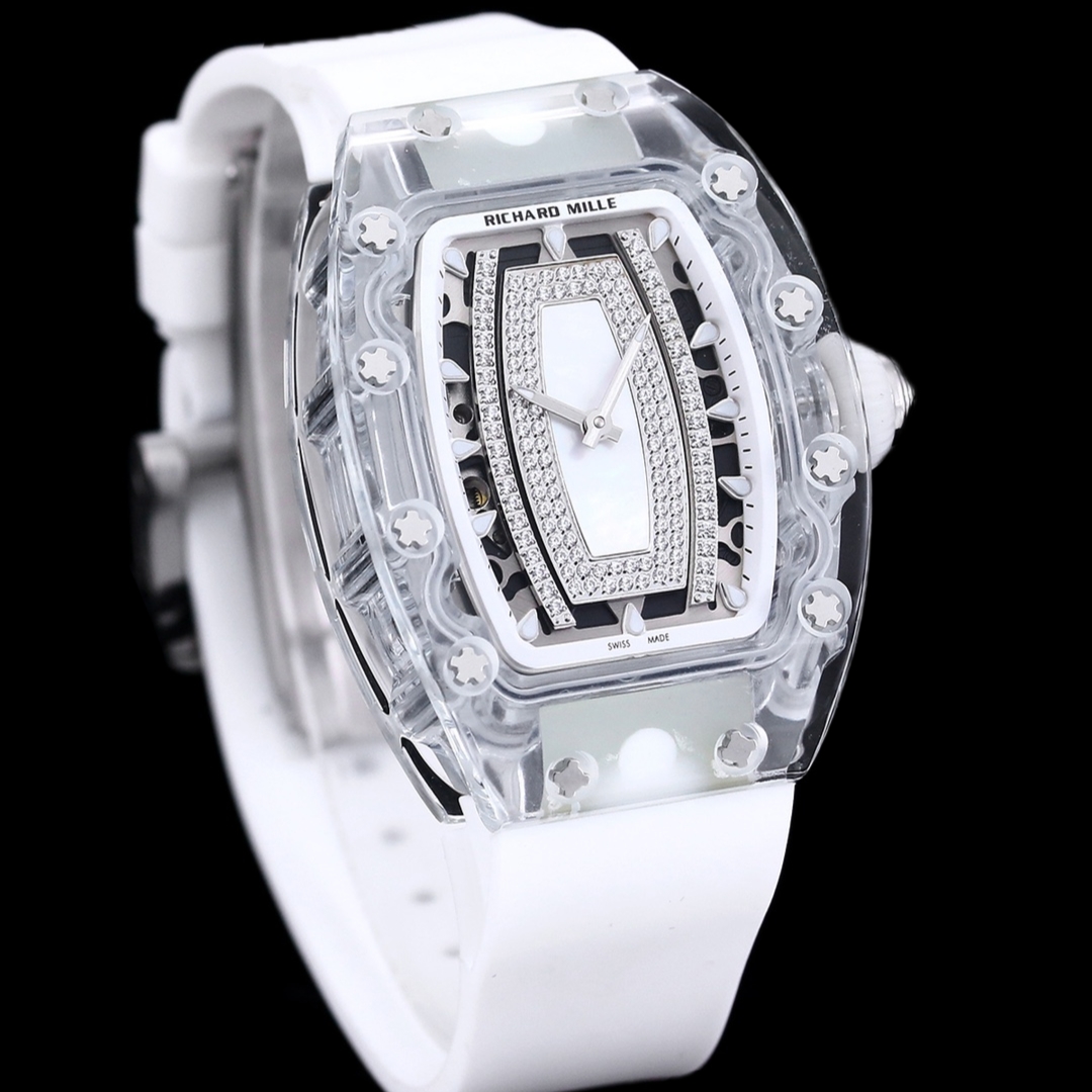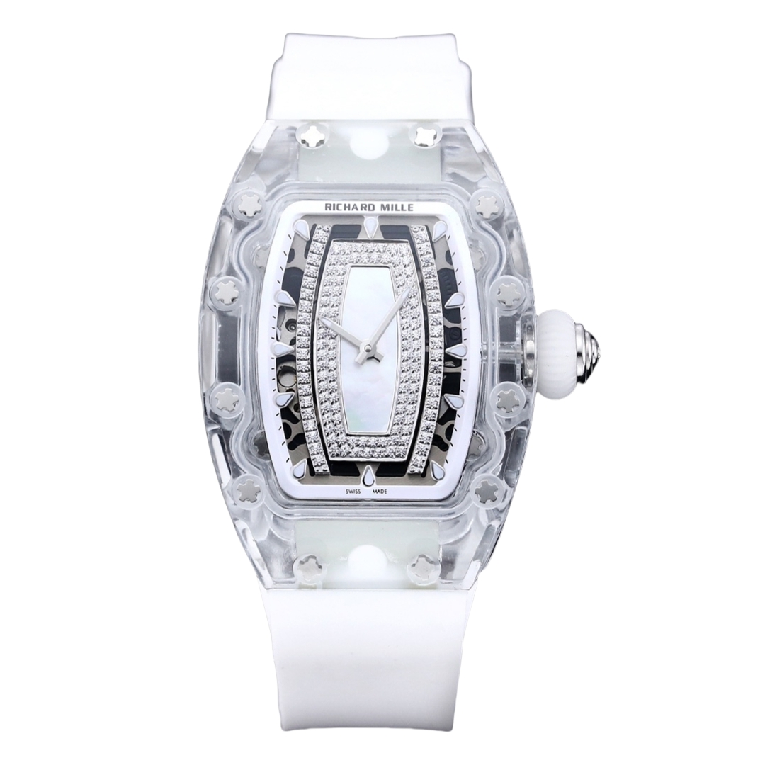 | Richard Mille RM07-02 45.66mm x 31.40mm Diamond Dial Transparent Bezel White Rubber Strap Ladies Woman | |