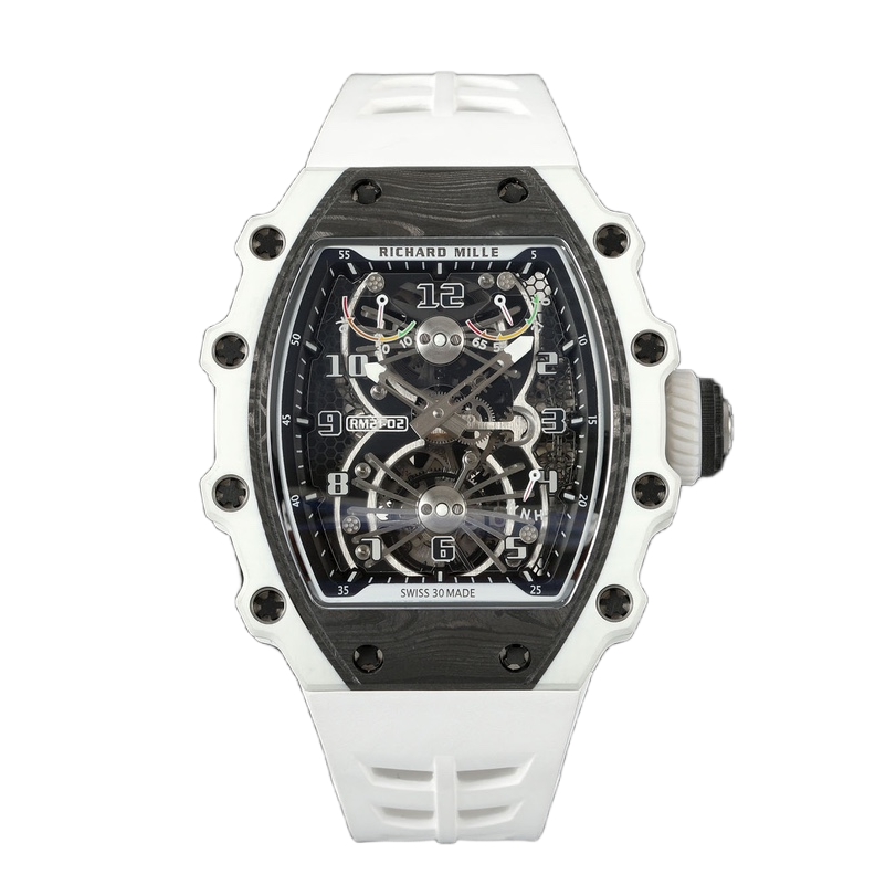 | Richard Mille RM21-02 Ti CA FQ 42.68mm x 50.12mm Grey Dial Black White Ceramics Bezel White Rubber Strap | |