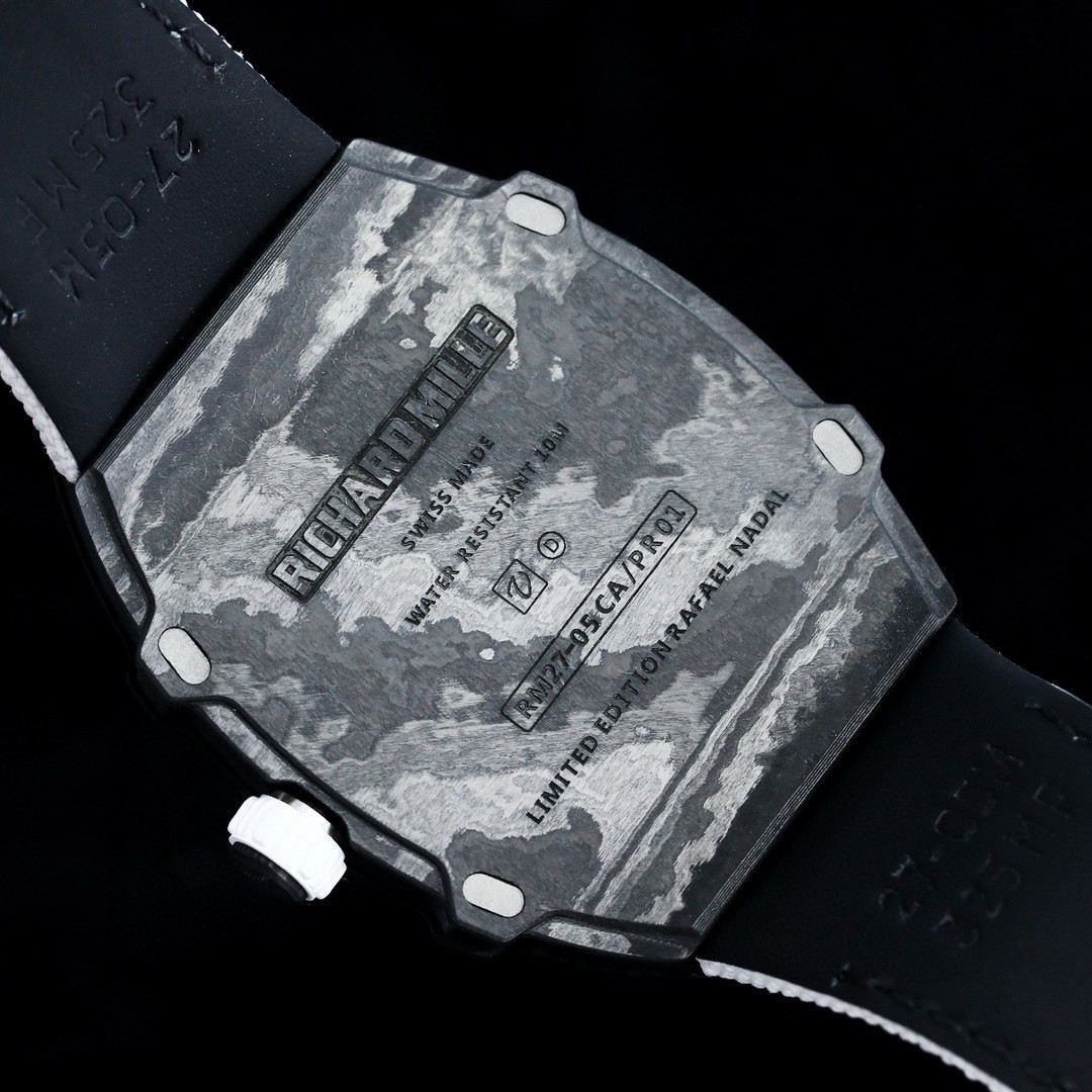 | Richard Mille RM27-05 37.25mm x 47.25mm Black Dial Black Carbon Fiber Bezel White Rubber Strap | |