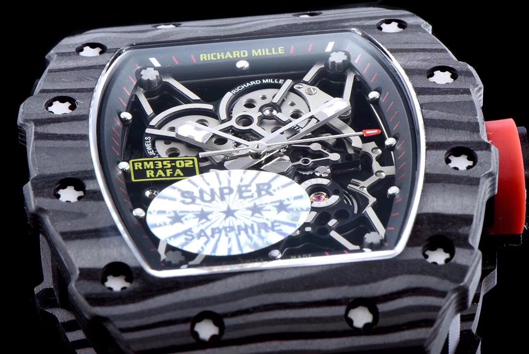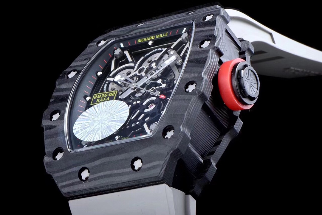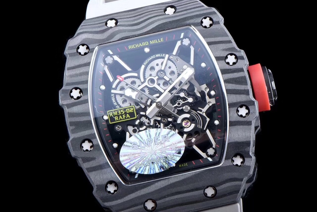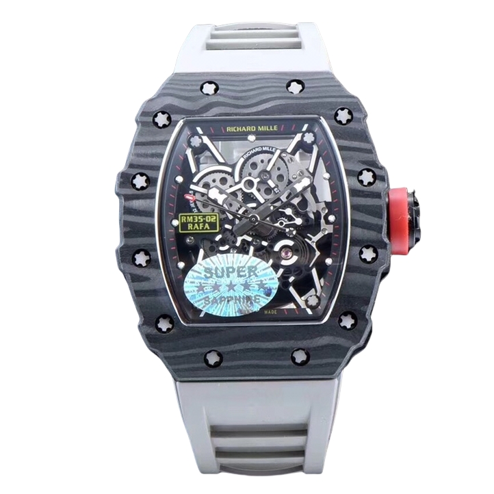 | Richard Mille RM35-02 49.94mm x 44.50mm Grey Hollow Dial Black Carbon Fiber Bezel Grey Rubber Strap | |