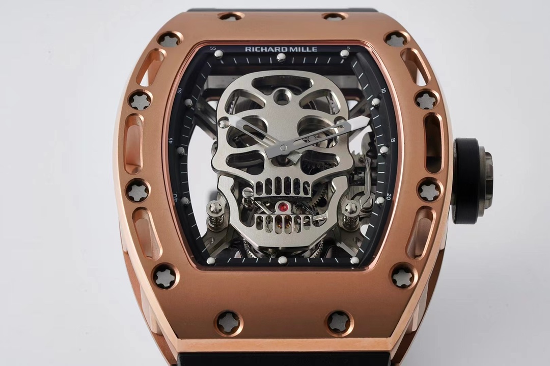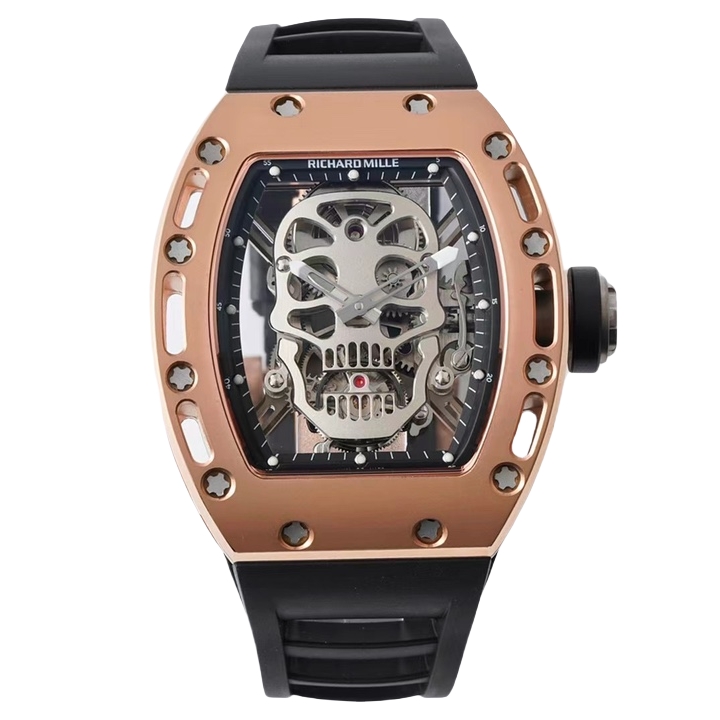 | Richard Mille RM52-01 50mm × 42.7mm Skull Dial Rose Gold Bezel Black Rubber Strap | |