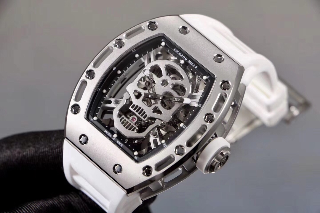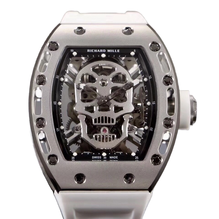 | Richard Mille RM52-01 50mm × 42.7mm Skull Dial Titanium Steel Bezel White Rubber Strap | |