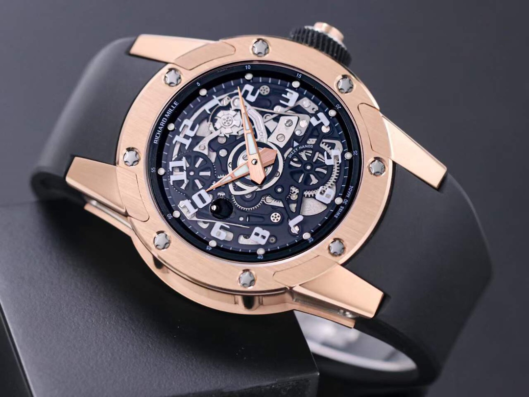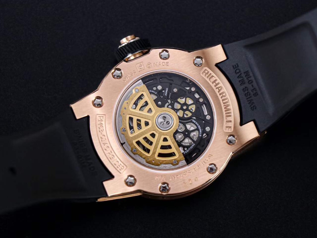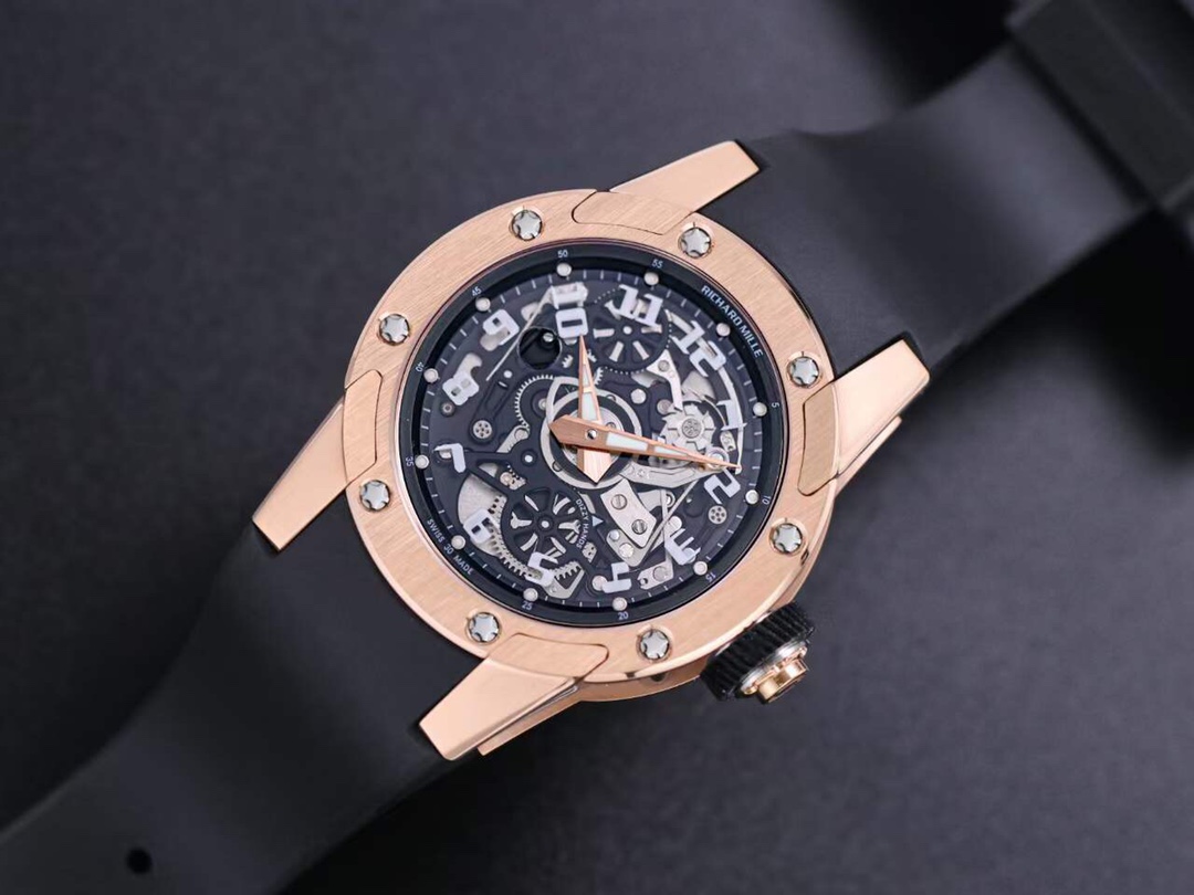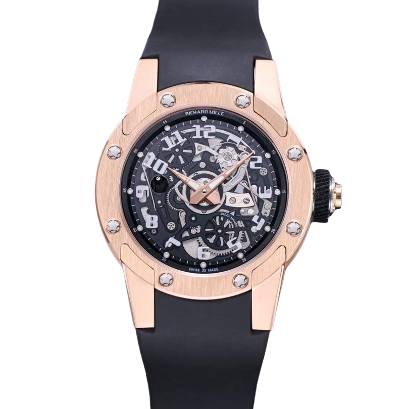 | Richard Mille RM63-01 42.7mm Black Dial Rose Gold Bezel Black Rubber Strap | |