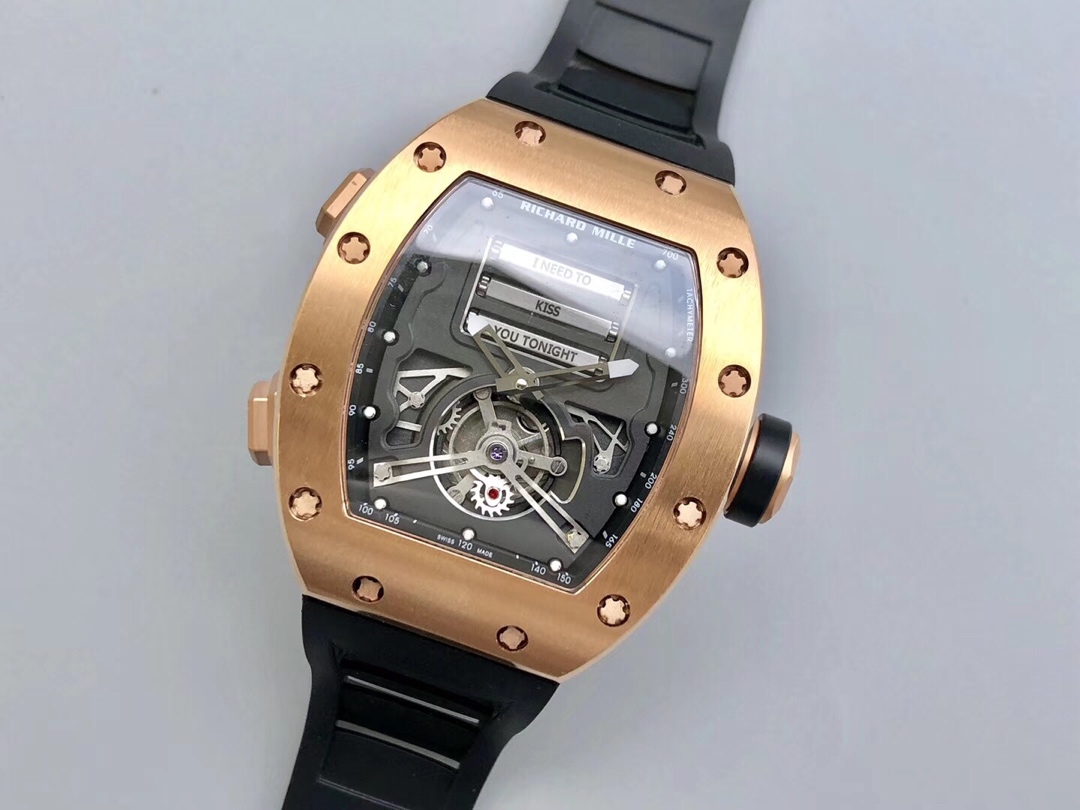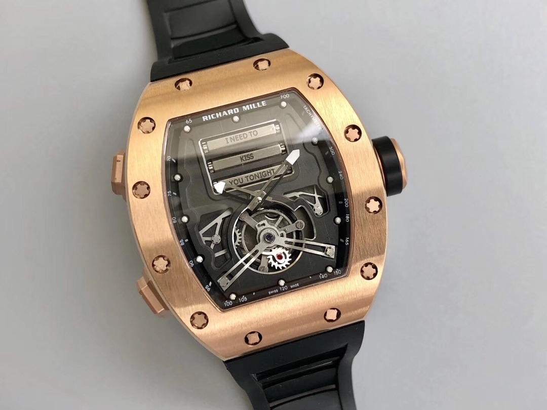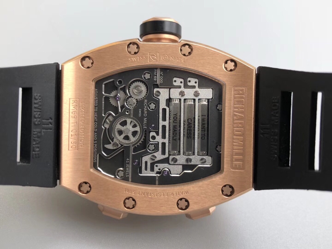 | Richard Mille RM69 50mm × 42.7mm Erotic Tourbillon Dial Rose Gold Bezel Black Rubber Strap | |